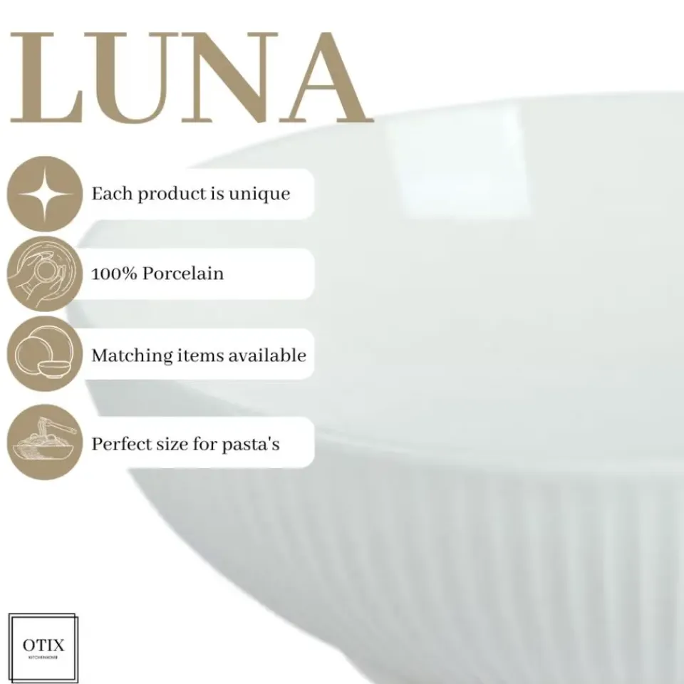 De OTIX Pastaborden Bordenset LUNA is een stijlvolle en praktische toevoeging aan je serviescollectie. Deze set bestaat uit 12 diepe borden, ideaal voor het serveren van pasta, soep, of salades. Uitgevoerd in klassiek wit porselein, stralen de borden elegantie en eenvoud uit, passend bij iedere tafelsetting.