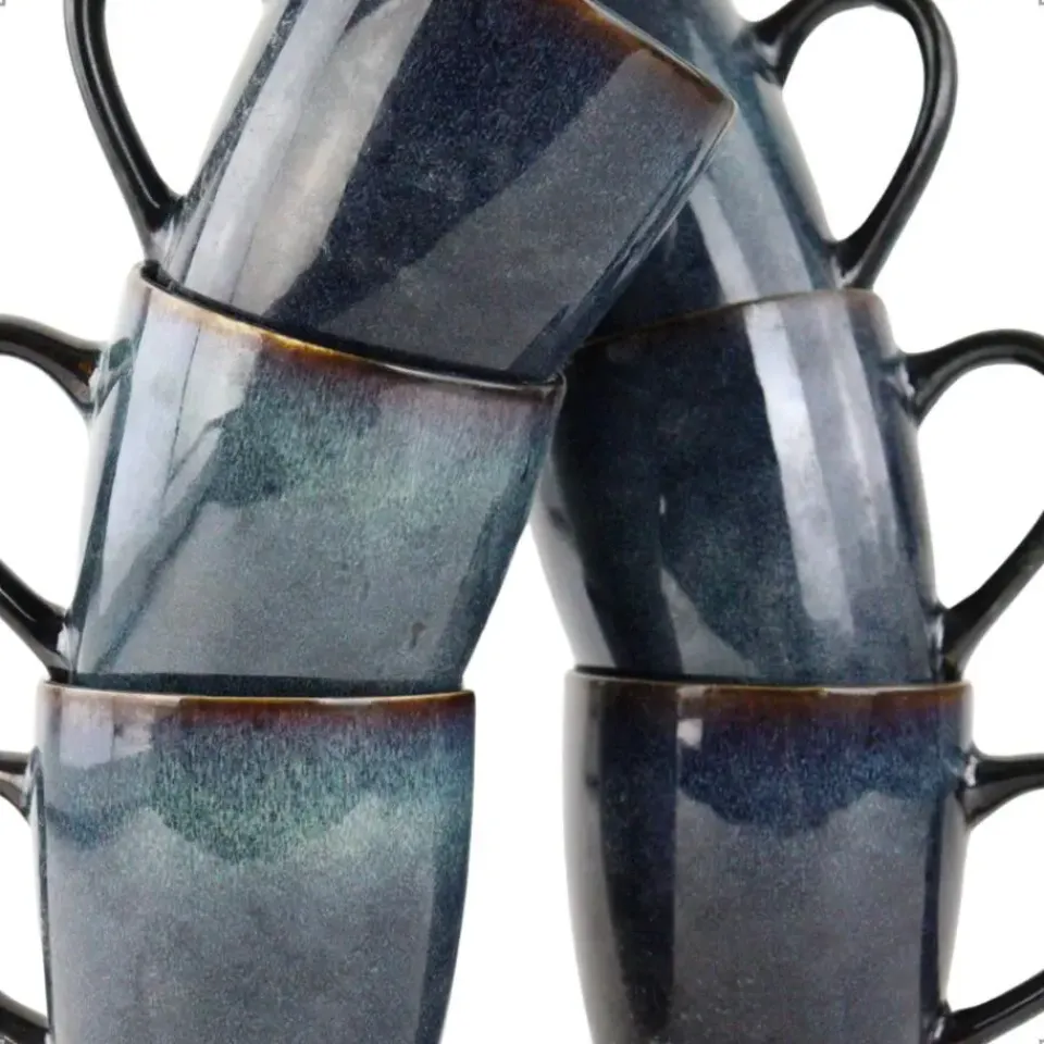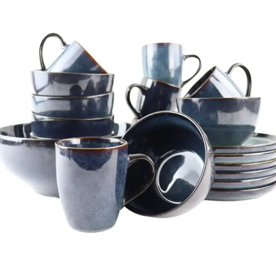 De diepe, donkerblauwe kleur en het hoogwaardige aardewerk geven een luxe uitstraling aan elke gelegenheid, van dagelijkse maaltijden tot speciale diners.