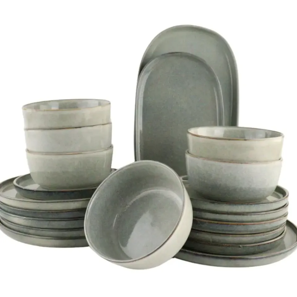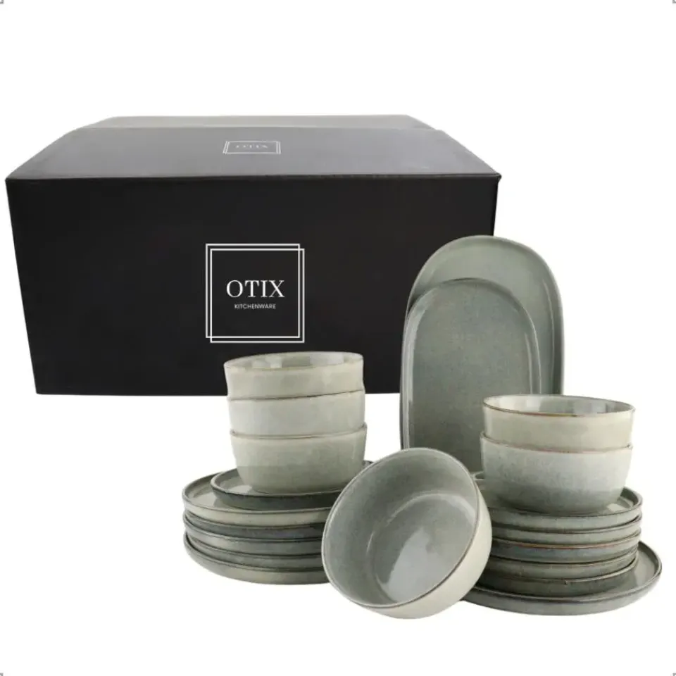 Voor je dagelijkse maaltijden zijn er de OTIX soepkommen (600 ml) en de bordensets: de ontbijtborden (21 cm) en dinerborden (27 cm), allemaal gemaakt van duurzaam grijs aardewerk. Perfect voor elke maaltijd, van ontbijt tot diner, en vaatwasserbestendig voor gemak.