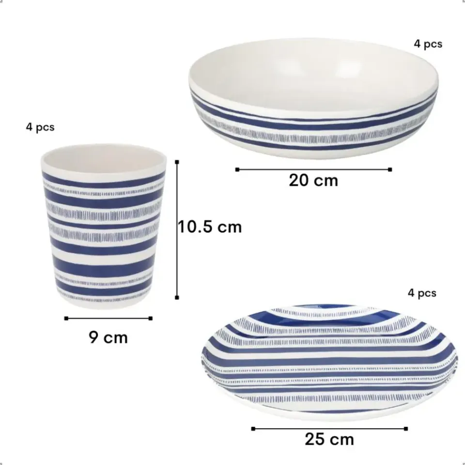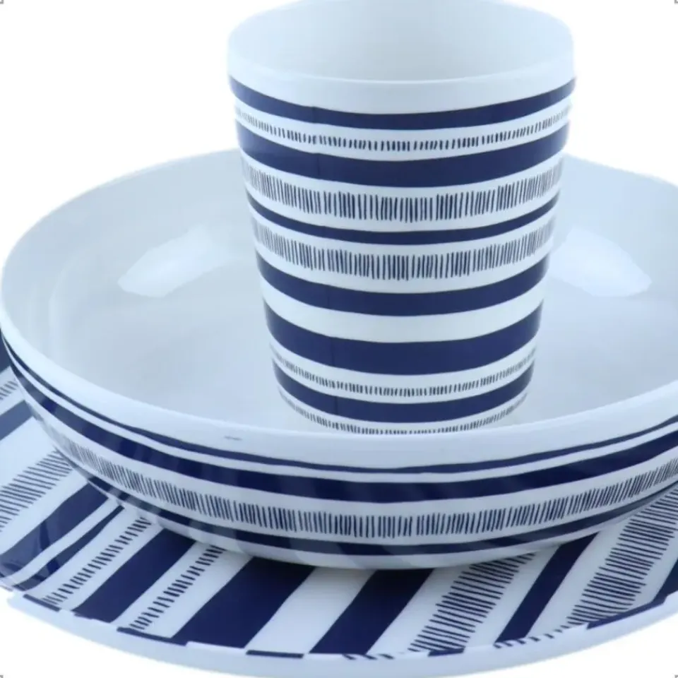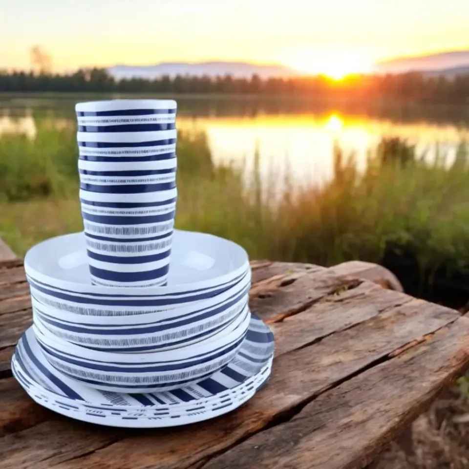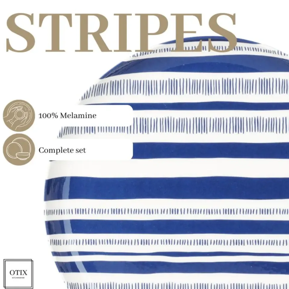 De OTIX Melamine Serviesset 12-Delig uit de STRIPES collectie is een stijlvolle en praktische keuze voor camping, picknicks en outdoor diners. Dit servies is gemaakt van duurzaam melamine, waardoor het lichtgewicht, stevig en breukbestendig is.