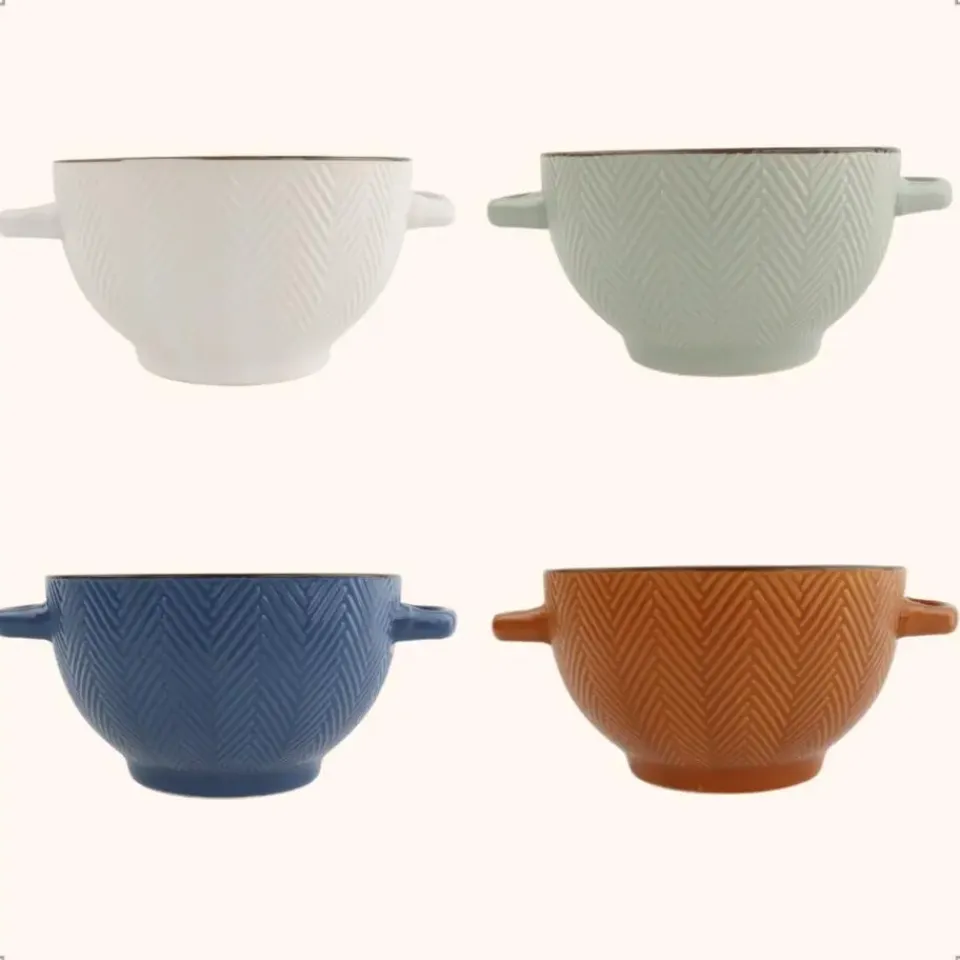 Soepkommen van het merk OTIX. De set bestaat uit 4 soepkommen met verschillende kleuren. Het materiaal van de kommen is aardewerk en de inhoud is 680 ml. De soepkommen zijn geschikt voor in de vaatwasser.