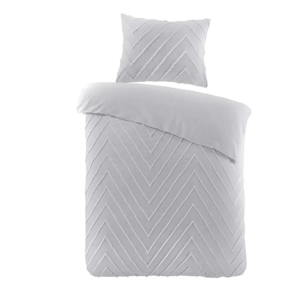 Het dekbedovertrek heeft een tufted streep patroon. Het straalt rust uit en laat zich makkelijk combineren met andere kleuren.