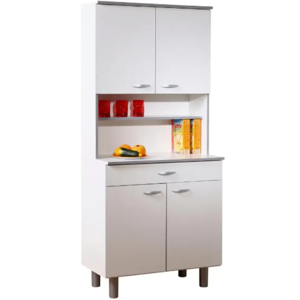 Buffetkast Easy vormt het antwoord op jouw opbergproblemen in de keuken. Deze ruime kast beschikt over een opbergruimte boven- en onderaan met 2 deuren en een legplank, een lade en een open vak in het midden met smalle legplank. De kast is gemaakt van spaanplaat.