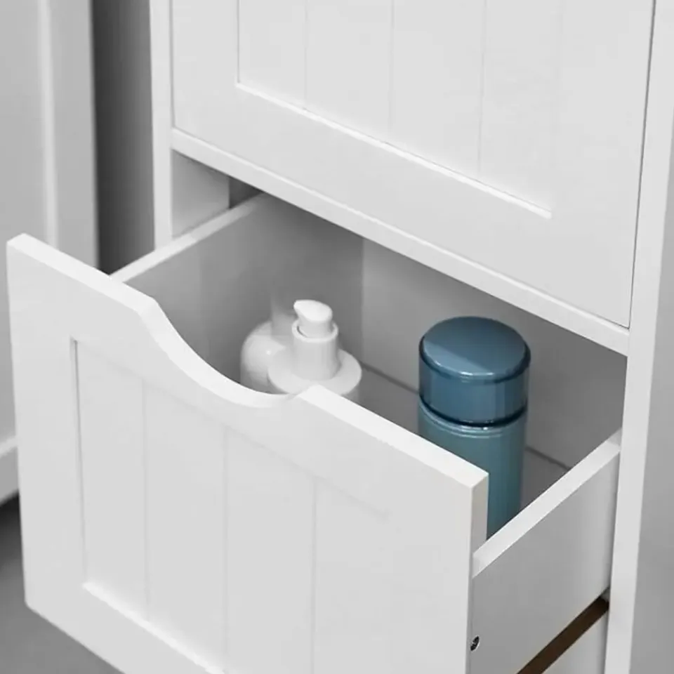 Deze opbergkast is niet alleen geschikt voor de badkamer, maar ook perfect voor andere kamers in huis. Gebruik hem in de woonkamer voor boeken en fotolijsten, in de eetkamer voor servies en glazen, of in de keuken voor kruiden en voorraadpotten. Dankzij het tijdloze design zijn de mogelijkheden eindeloos!