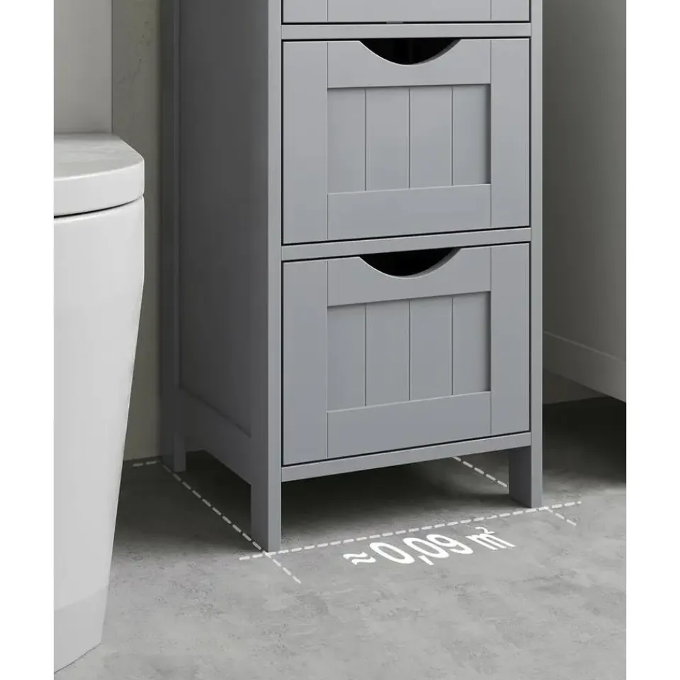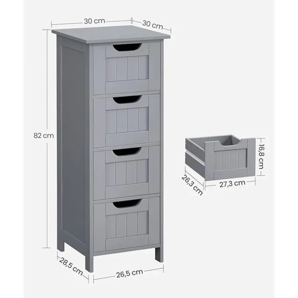 De Parya Home badkamerkast is de perfecte oplossing voor extra opbergruimte zonder in te leveren op stijl. Met 4 ruime lades biedt deze kast voldoende plek voor handdoeken, toiletrollen, parfum en andere badkamerbenodigdheden. Dankzij het compacte formaat van 30 x 30 x 82 cm neemt hij nauwelijks vloeroppervlak in beslag, ideaal voor kleinere badkamers en ruimtes.