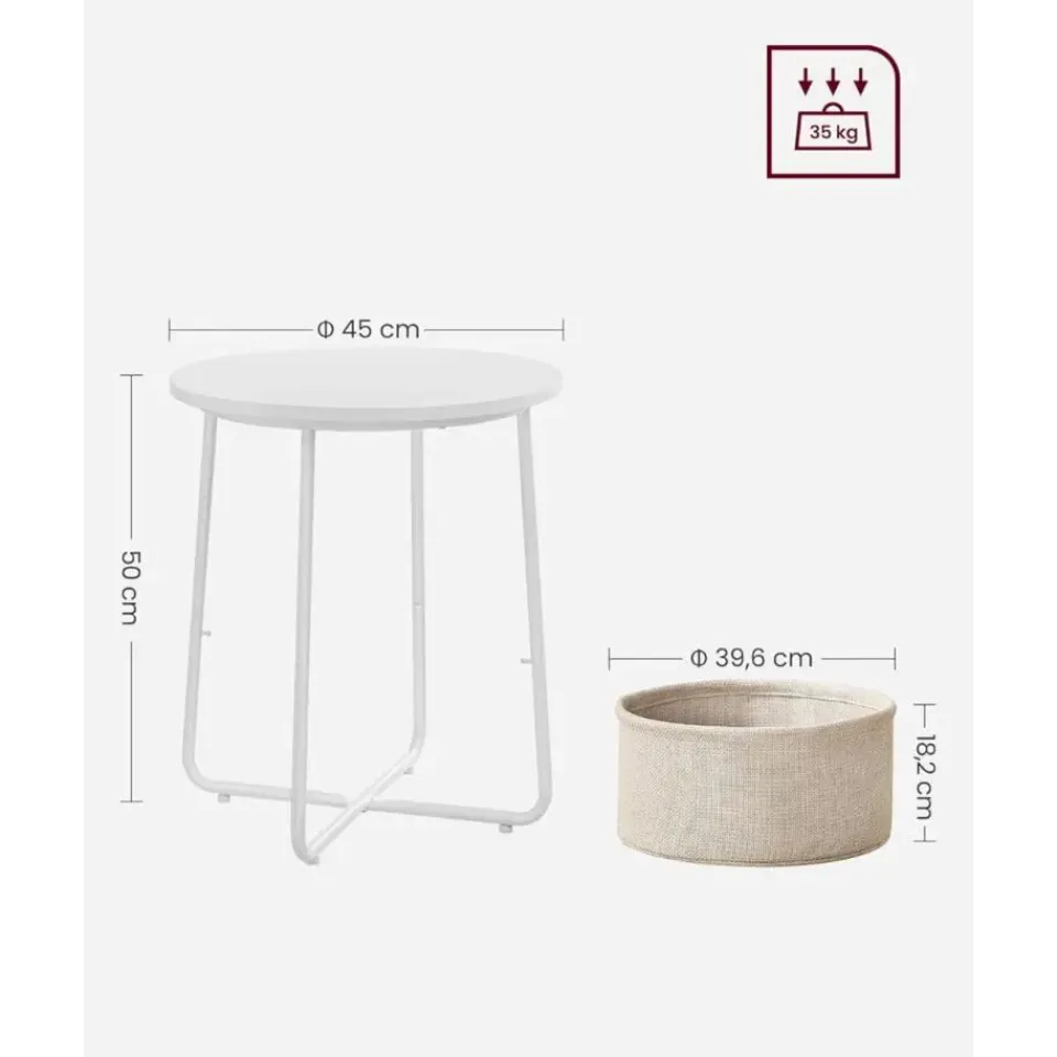 Met een afmeting van 45 x 50 cm (Ø x H) en een mand van 39,6 x 18,2 cm (Ø x H) is de Parya Home banktafel ideaal voor kleine kamers. Gebruik hem als bijzettafel in de woonkamer of als nachtkastje in de slaapkamer; hij neemt weinig ruimte in, maar biedt voldoende opbergruimte.