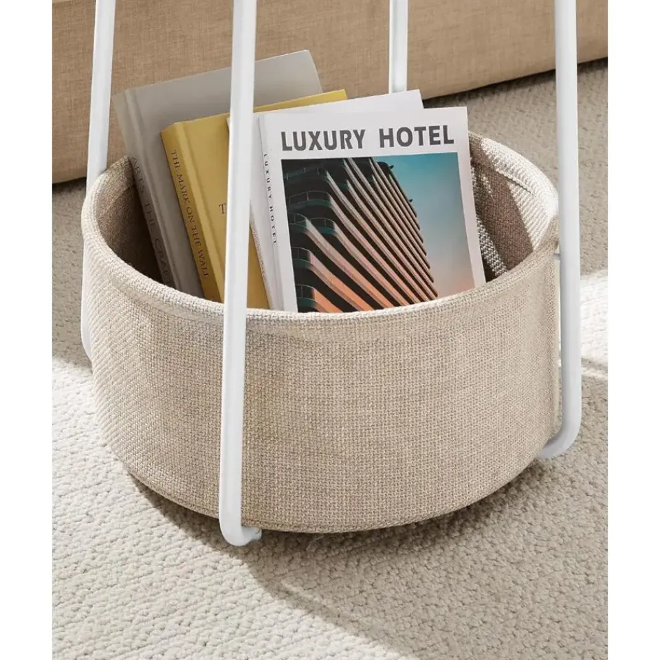 De mand van de Parya Home bijzettafel is gemaakt van glad, dubbelgelaagd polyester zonder chemische coatings, wat zorgt voor veilig gebruik. De linnen uitstraling voegt een unieke, stijlvolle touch toe aan de tafel.