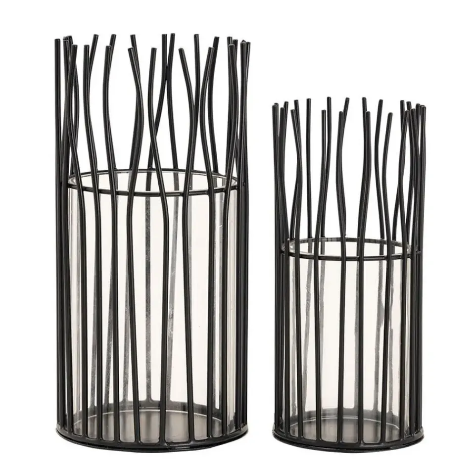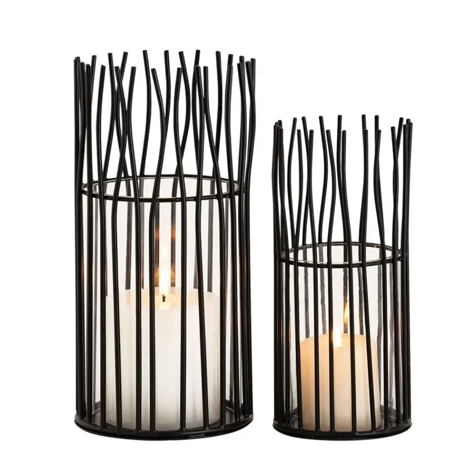 - Lantaarnset, 2 stuks, gemaakt van aluminium draden, handgemaakt tot een hoge kwaliteit, mat zwart of zilver