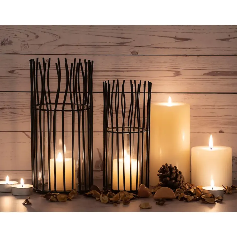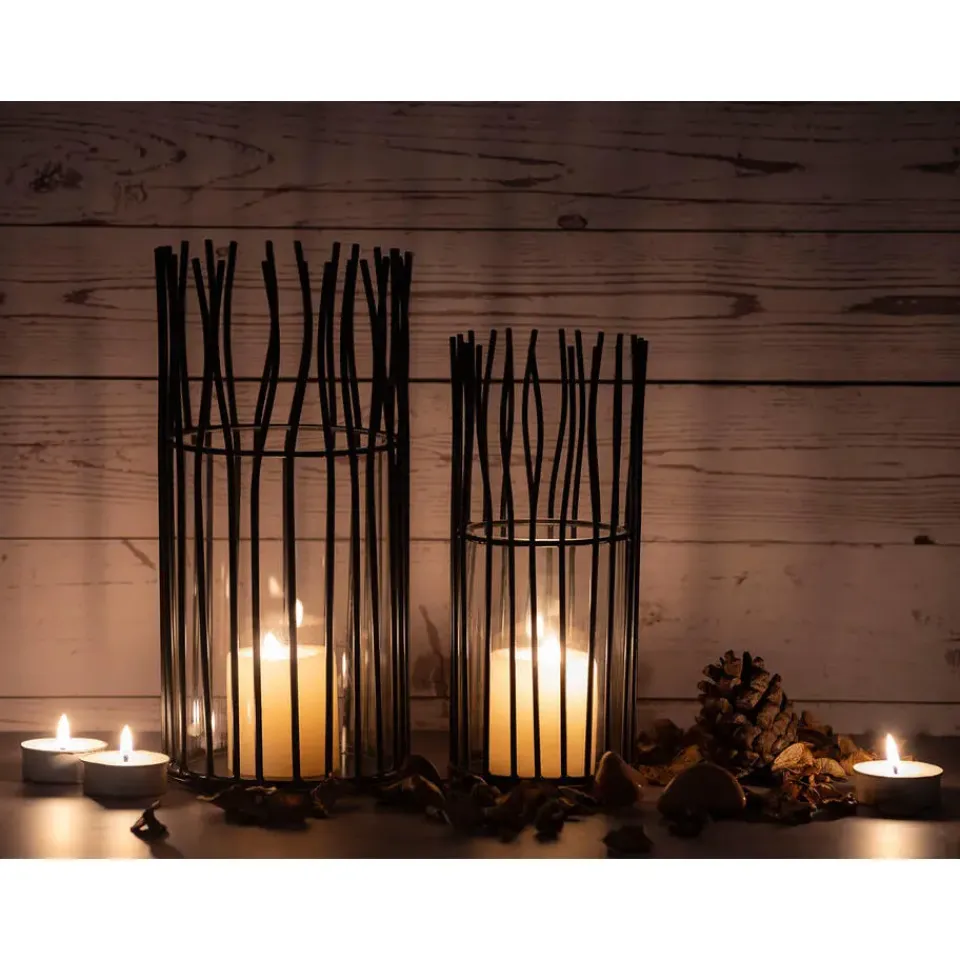 glazen inzetstuk geschikt als kandelaar voor LED-lampen of echte waskaarsen- Lantaarnset, 2 stuks, gemaakt van aluminium draden, handgemaakt tot een hoge kwaliteit, mat zwart of zilver