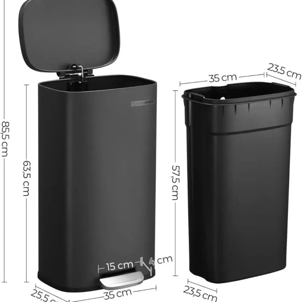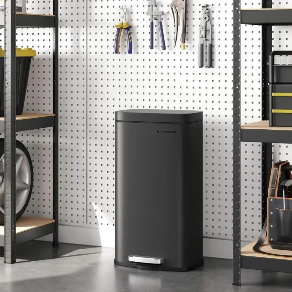 Geschikt voor de meeste huishoudens: Met een capaciteit van 30 liter en afmetingen van 34,8 x 29,7 x 63,3 cm biedt de Parya Home vuilnisemmer voldoende ruimte voor je afval, terwijl hij weinig vloeroppervlak in beslag neemt. Het moderne en stijlvolle design past perfect bij verschillende interieurstijlen.