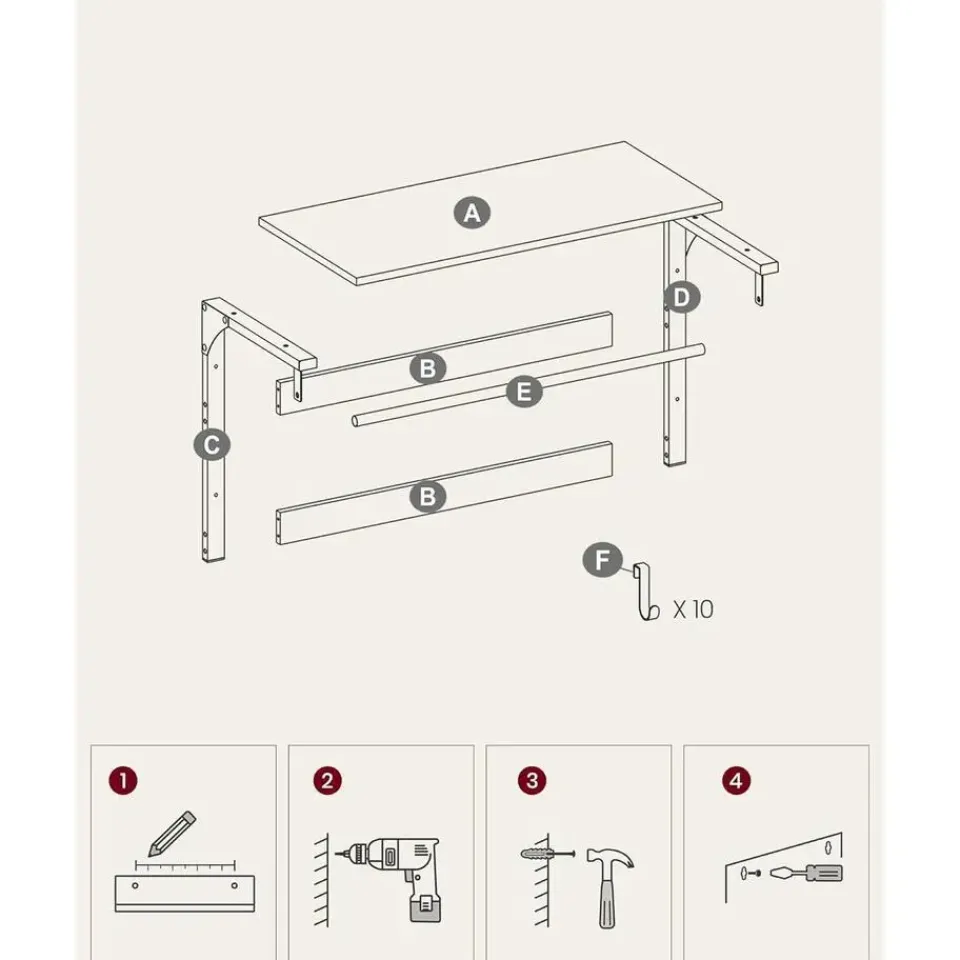 Eenvoudige montage – Dankzij de duidelijke handleiding, gemarkeerde onderdelen en het meegeleverde bevestigingsmateriaal monteer je deze kapstok moeiteloos.