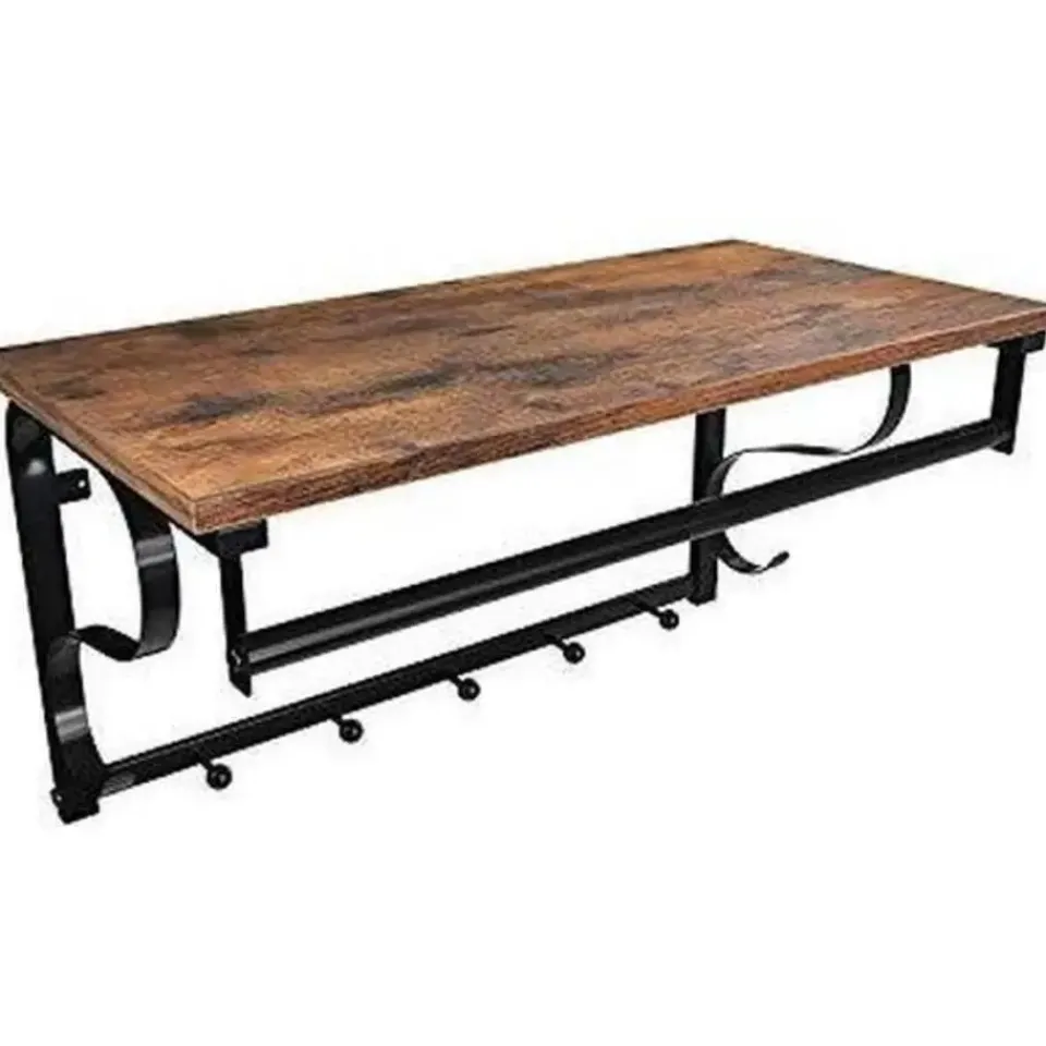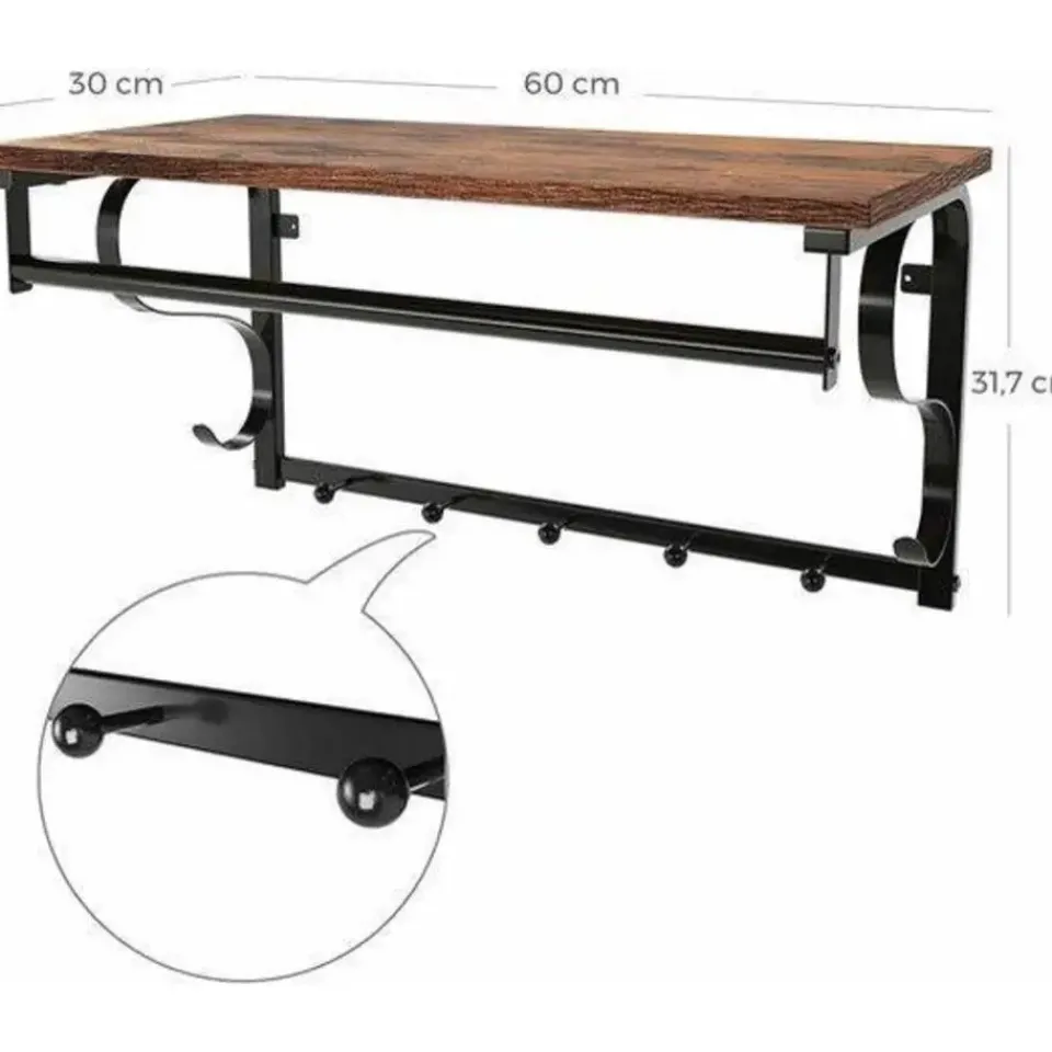 Zoekt u een stevige kapstok met hoedenplank ? Dan is dit exemplaar een perfecte keuze. Aan de 5 haken kunt u al uw jassen, sjaals, tassen en hoeden hangen. De bruine kleur van het hout en het zwarte metaal zorgen voor een lichte vintage toets die past in haast elk interieur.