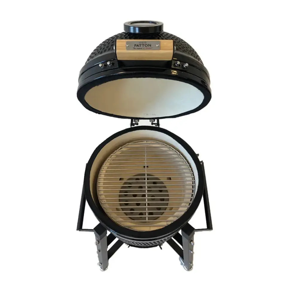 De Patton Kamado 15 barbecue wordt standaard uitgevoerd met een degelijk en verrijdbaar onderstel. De houtskool barbecue kan gemakkelijk worden aangestoken met een briketten starterset. Als de briketten of houtskool warm zijn, kan de barbecue worden gestart. Dankzij het ventilatie rooster kan de luchttoevoer worden geregeld.