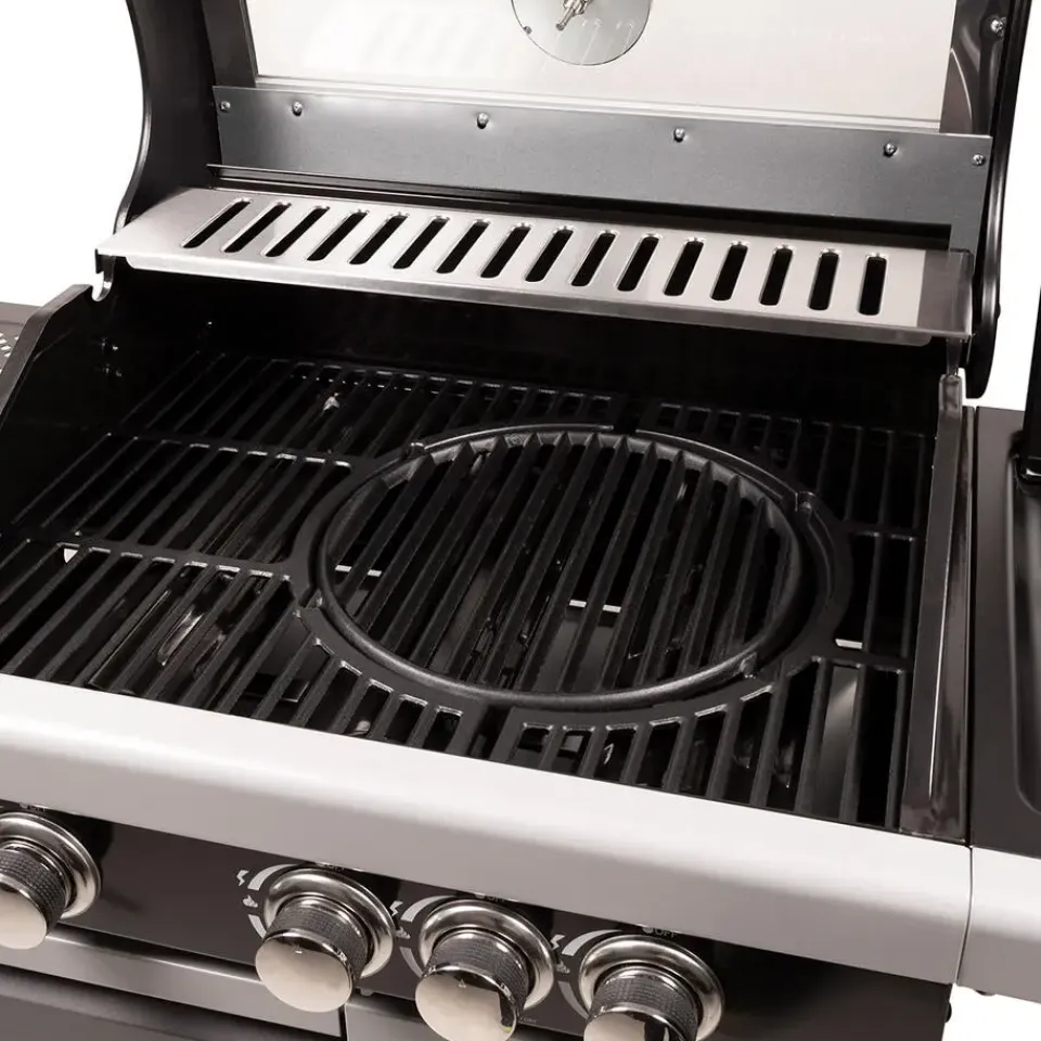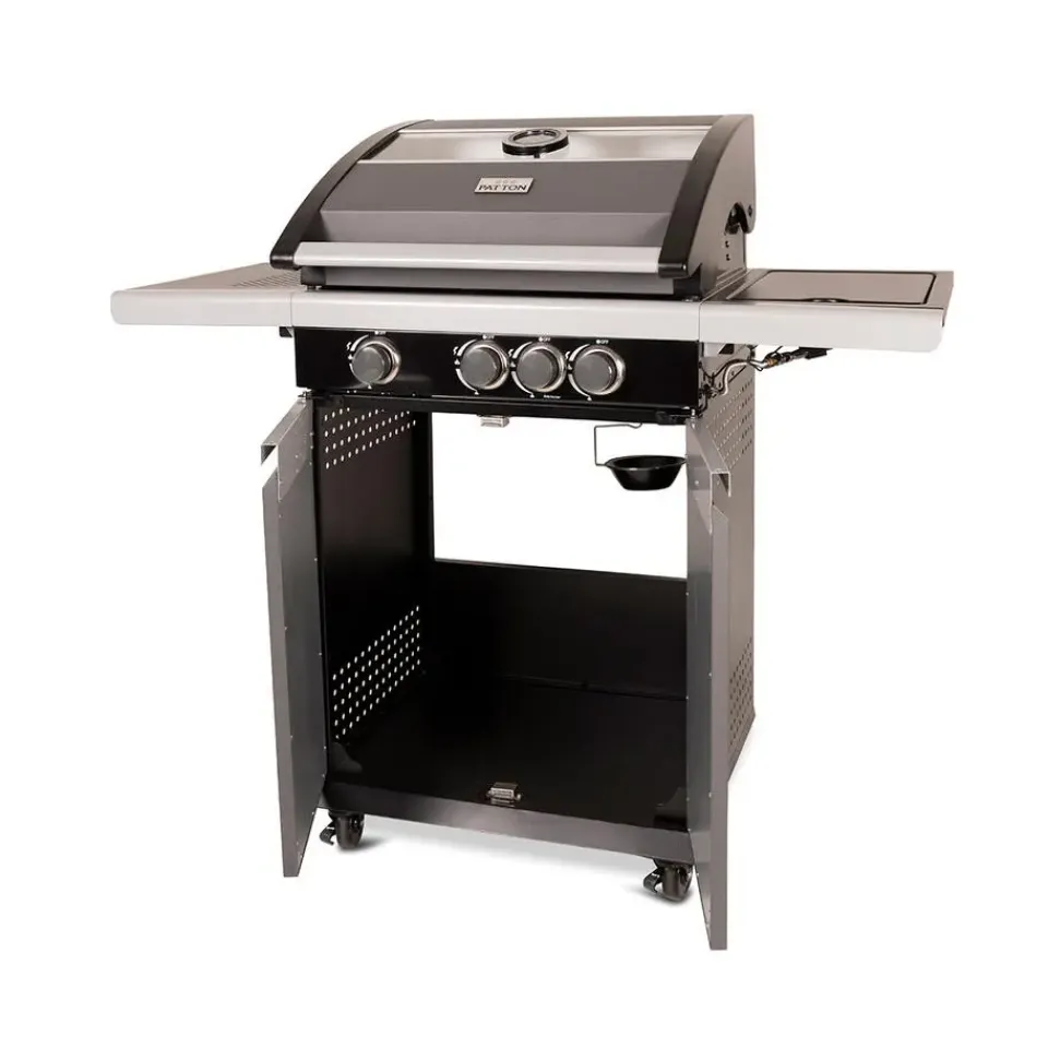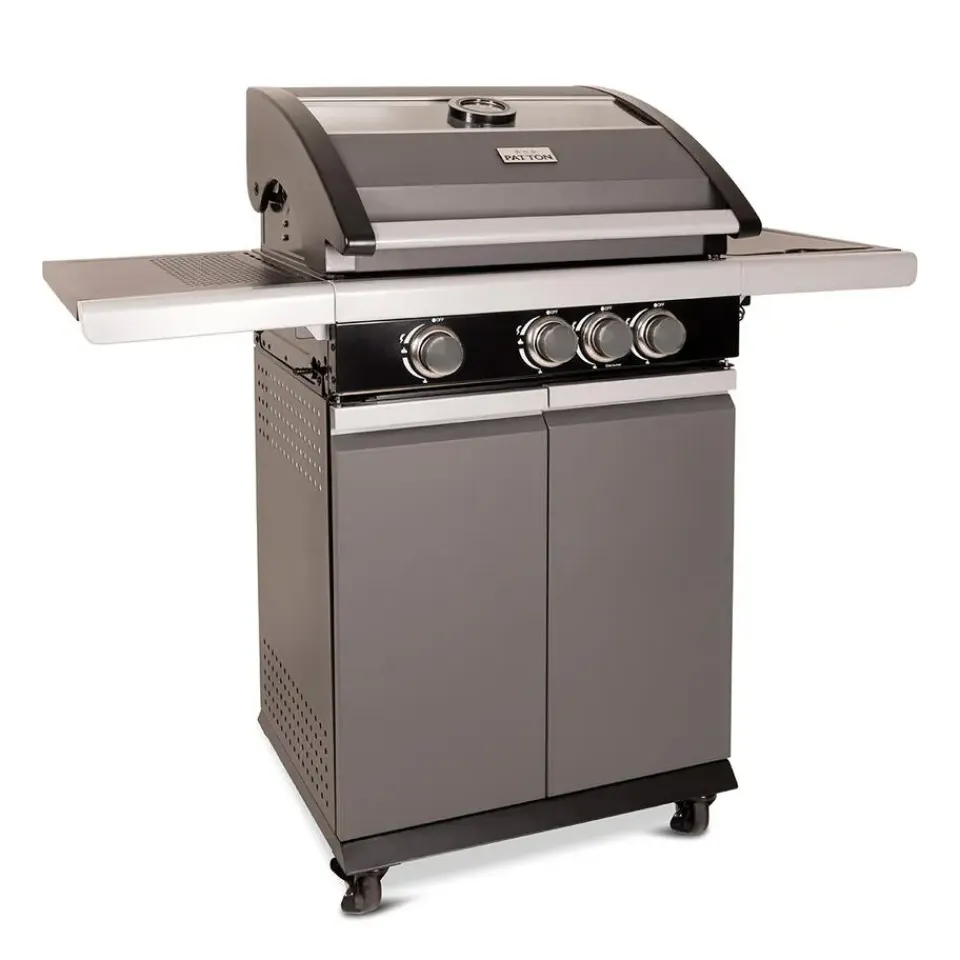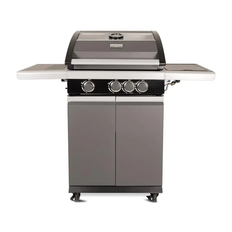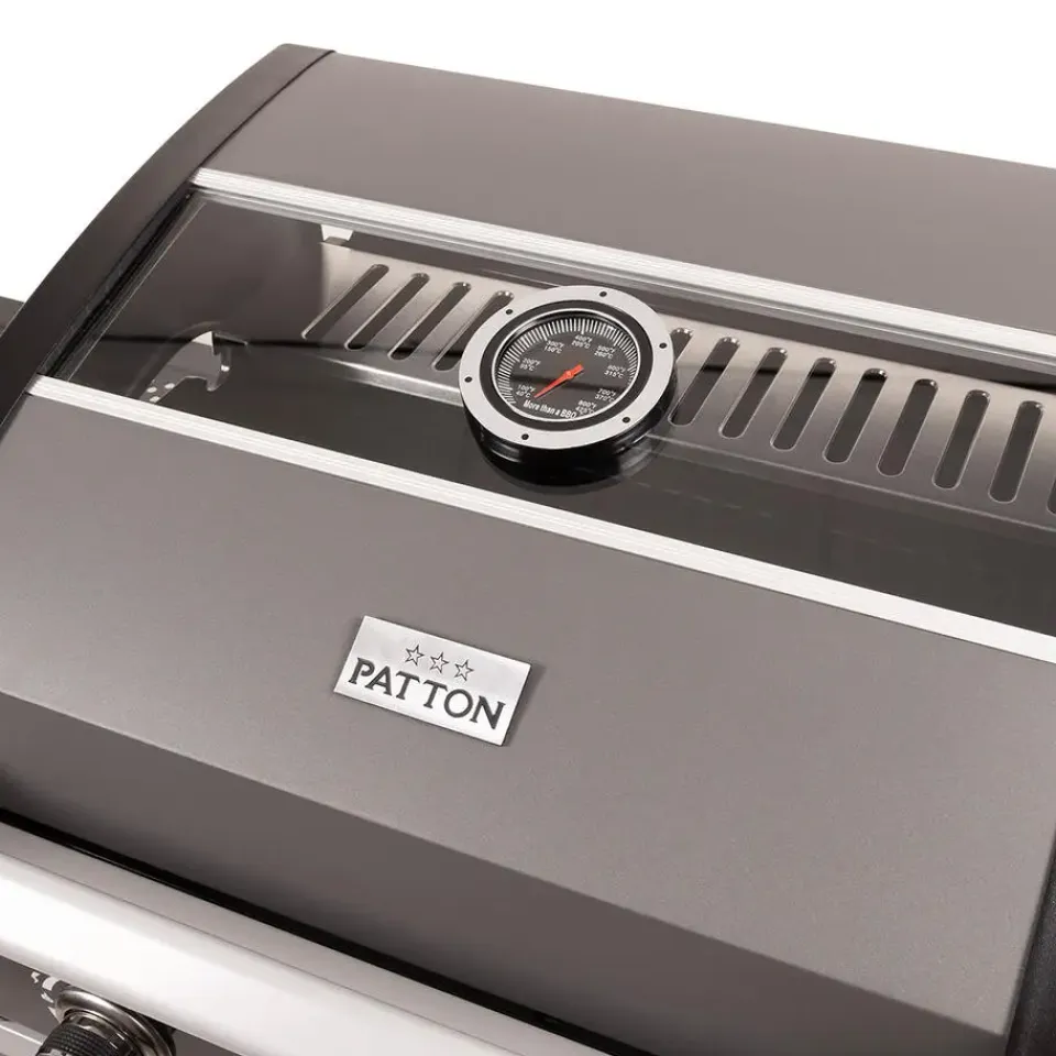 Zoek je een prachtige Patton barbecue met glazen kap? Dan is de Patton Patio Pro Chef gasbarbecue helemaal geschikt voor jou! De Patton Patio Pro Chef is van topkwaliteit en is te plaatsen in iedere tuin. Met de Patton Patio Chef gasbarbecue maak je heerlijke gerechten klaar voor jou en je vrienden. De barbecue heeft een mooi groot formaat waardoor je verschillende gerechten tegelijkertijd kunt klaarmaken. De barbecue heeft vier wielen, hierdoor kun je de barbecue gemakkelijk verplaatsen. De Patio Chef gasbarbecue van kwaliteitsmerk Patton is volledig gemaakt van RVS. De barbecue is voorzien van drie hoofdbranders en een zijtafel met een zijbrander. Op deze zijbrander kun je eenvoudig saus warm houden. De gasbarbecue is voorzien van gietijzeren roosters met een afmeting van 57 cm bij 40 cm. Naast dit mooie rooster beschikt de gasbarbecue ook over een RVS warmhoud plateau. Dit plateau kan ook functioneren als extra grill niveau voor bijvoorbeeld groente of vis te garen. De Patio Chef barbecue is eenvoudig te ontsteken door een geïntegreerde ontsteking. De barbecue heeft geëmailleerde vlammendempers die ervoor zorgen dat schoonmaken vrij eenvoudig is en dat de barbecue lang mee kan gaan. De barbecue is voorzien van een glazen kap, hierdoor is het eenvoudig het garingsproces te volgen. De kap hoeft niet geopend te worden, waardoor de temperatuur behouden blijft binnenin de barbecue. De gasbarbecue van Patton heeft een afmeting van 54 x 123 x H113 cm. De barbecue beschikt over drie RVS-branders van 9 kW en een 2.4 kW zijbrander.