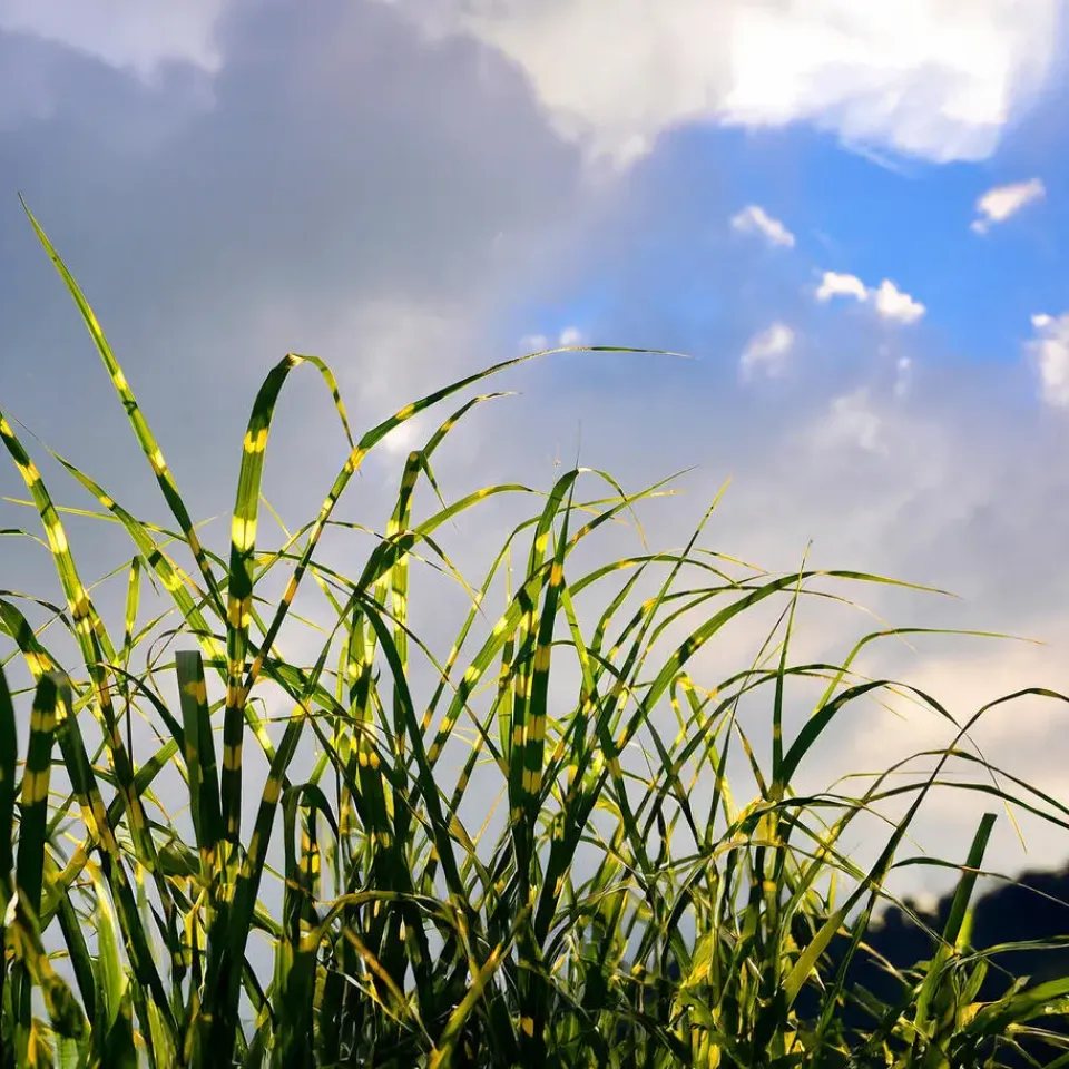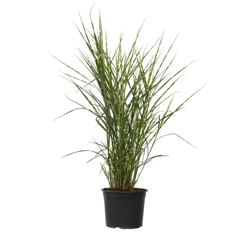 De Miscanthus ‘Zebrinus’ is een decoratief gras met lange smalle opgaande bladeren. Dit gras onderscheid zich van andere Miscanthus soorten door de crèmekleurige en horizontale strepen op het blad. Hierdoor wordt het ook wel Zebragras genoemd. Het gras bloeit polvormige en bronskleurige pluimen van september tot en met oktober, wat een ontzettend gaaf gezicht is tijdens de winter in de tuin.