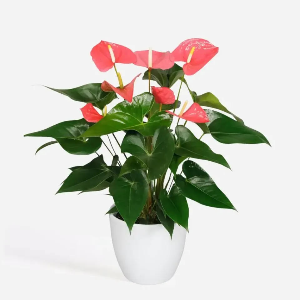 De Anthurium is makkelijk te verzorgen. Geef matig water en houd de grond licht vochtig zonder overtollig water. Zet de plant op een lichte plek met gefilterd zonlicht of in de halfschaduw. De ideale temperatuur ligt tussen 18 en 22 graden Celsius. Houd er rekening mee dat deze plant giftig kan zijn en plaats haar buiten bereik van huisdieren en kleine kinderen. Dankzij haar langdurige bloei en minimale verzorging brengt deze Anthurium het hele jaar door kleur in huis.