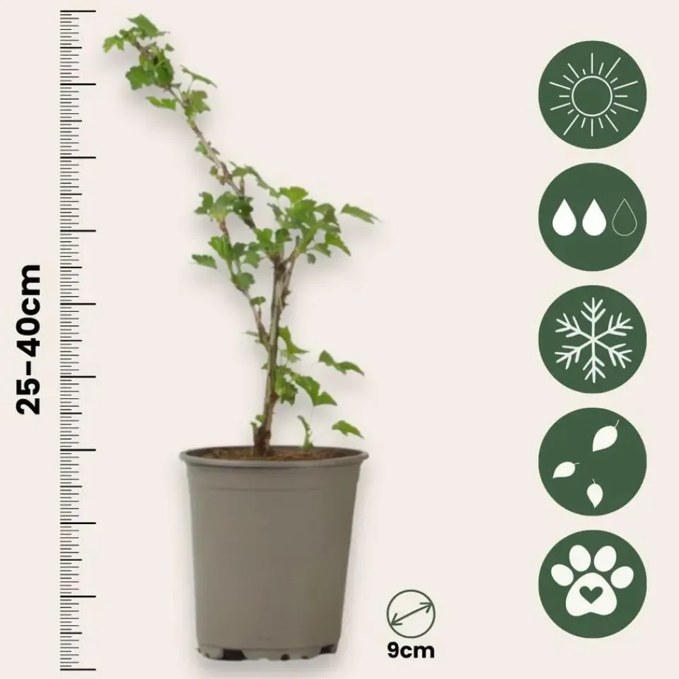 De plant heeft bij levering een hoogte van 25-40cm, gemeten inclusief de kwekerspot. De plant wordt geleverd in een kwekerspot met een diameter van 9cm.