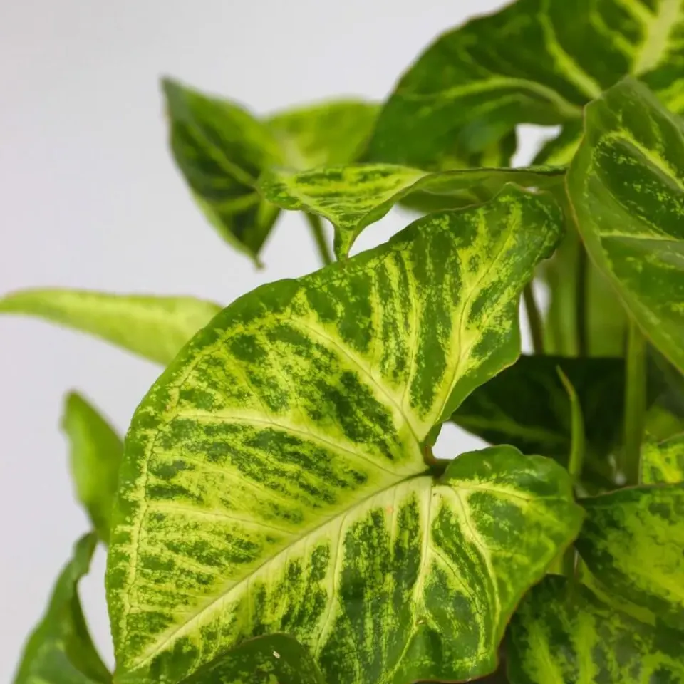 Ctenanthe Burle Marxii, Philodendron White Wave en Syngonium zijn tropische planten die gedijen in warme, vochtige omgevingen. Ze gedijen goed bij helder, indirect licht en moeten worden beschermd tegen direct zonlicht. Houd de grond vochtig maar niet doorweekt en zorg voor een hoge luchtvochtigheid door regelmatig te sproeien. Bemest tijdens het groeiseizoen en verminder de watergift in de winter. Verwijder regelmatig stof van de bladeren en controleer op plagen. Snoei dode of beschadigde bladeren voor een gezonde uitstraling en stimuleer nieuwe groei.