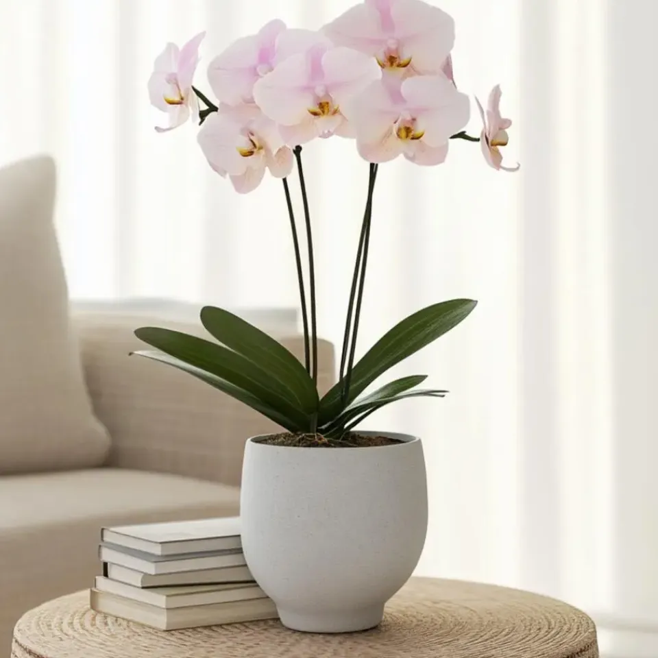 De Phalaenopsis heeft een voorkeur voor een minimale nachttemperatuur van 16°C en een maximale dagtemperatuur van 32°C. De ideale dagtemperatuur ligt tussen de 20 en 22°C. Zet de orchidee op een lichte plek, maar zonder direct zonlicht, zeker in de zomermaanden. Worden de bladeren geel? Waarschijnlijk krijgt de plant te veel direct zonlicht. Afvallende bloemknoppen of donkergroene bladeren duiden daarentegen op een gebrek aan licht. Giet het water voor de orchidee niet in het hart van de plant, maar op de aarde in de pot. Beter nog is om de pot een minuutje in een emmer onder te dompelen. Dan kan de orchidee gerust zeven dagen zonder water. Gebruik bij voorkeur speciale orchideeënpotgrond.