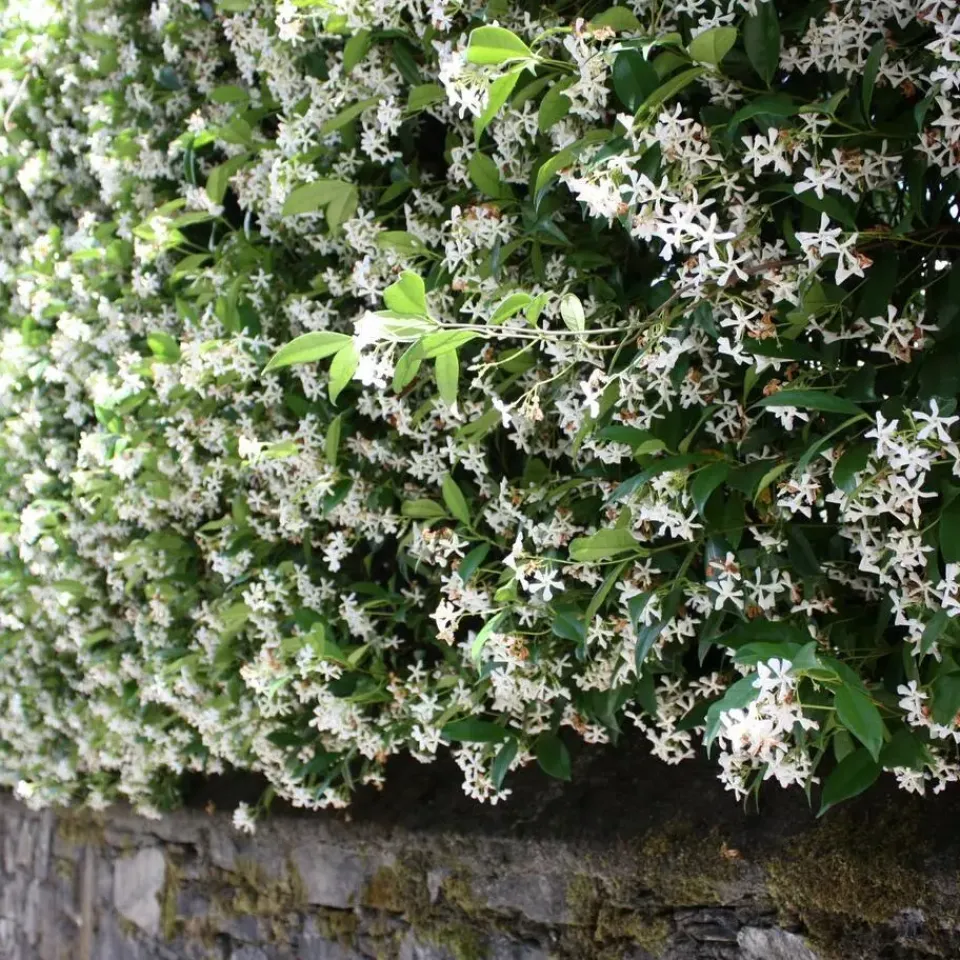 Fleur je tuin op met deze set van zes witte jasmijnplanten. Deze elegante groenblijvende klimmer draagt romige stervormige bloemen. Het glanzende, donkergroene blad van jasmijn vormt de perfecte achtergrond voor zijn dramatische bloemen die de lucht parfumeren met een onweerstaanbare, zoete geur. Deze plant blijft ‘s winters mooi groen en bloeit met geurige, witte, stervormige bloemen. Toscaanse jasmijn bloeit vanaf eind april de hele zomer door. Je kunt de Toscaanse jasmijn soms tientallen meters verderop al ruiken. Door de heerlijke geur wordt jasmijn ook vaak in parfum gebruikt.