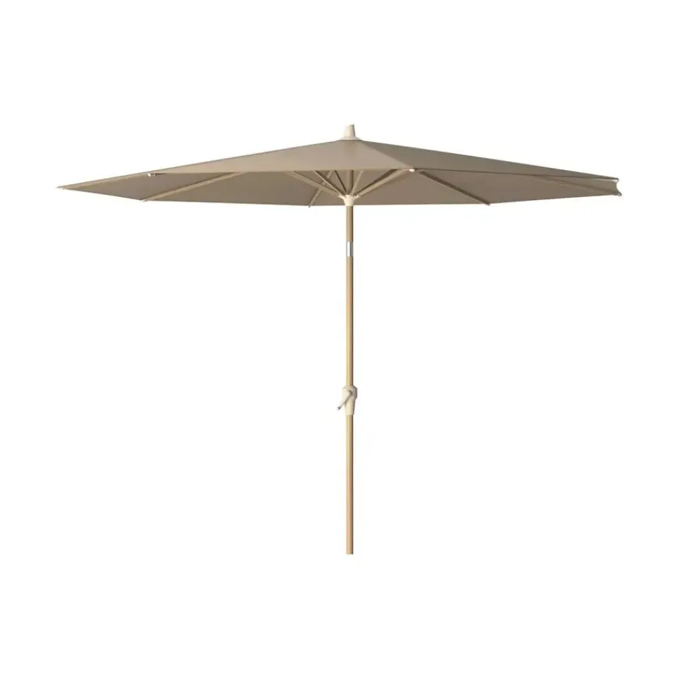 Het frame van de Riva parasol is gemaakt van aluminium en is afgewerkt met een teak houtlook. Dit combineert de voordelen van licht en roestvrij aluminium met de warme uitstraling van hout.