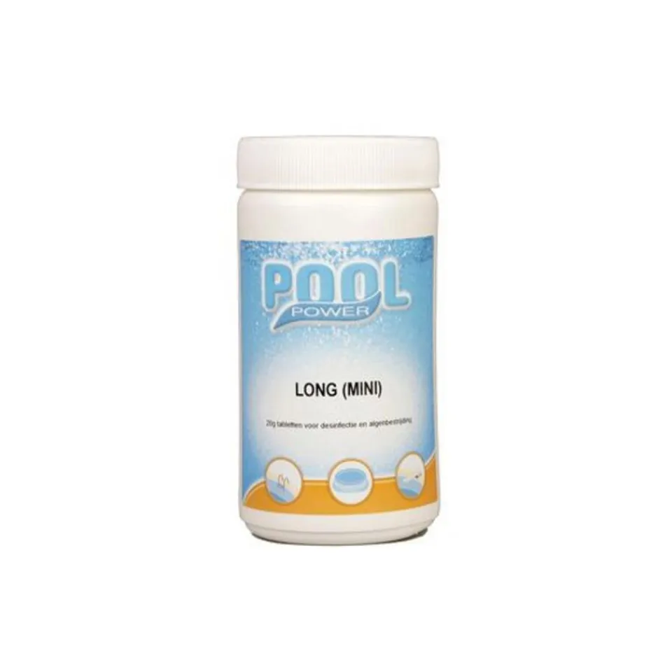 Zwembad chloortabletten langzaam oplossend 20 grams 1 kilo. Een pot met 1 kilo aan langzaam oplossende desinfectie tabletten voor kleine zwembaden. Deze zorgen voor een continue desinfectie van uw zwembad. Geschikt voor zwembaden met 5 tot 7000 liter water. Deze chloortabletten kunnen worden gebruikt in combinatie met de Chlorinator. Bevat Trichloorisocyanuurzuur, 90% actief chloor, 20 grams tabletten.