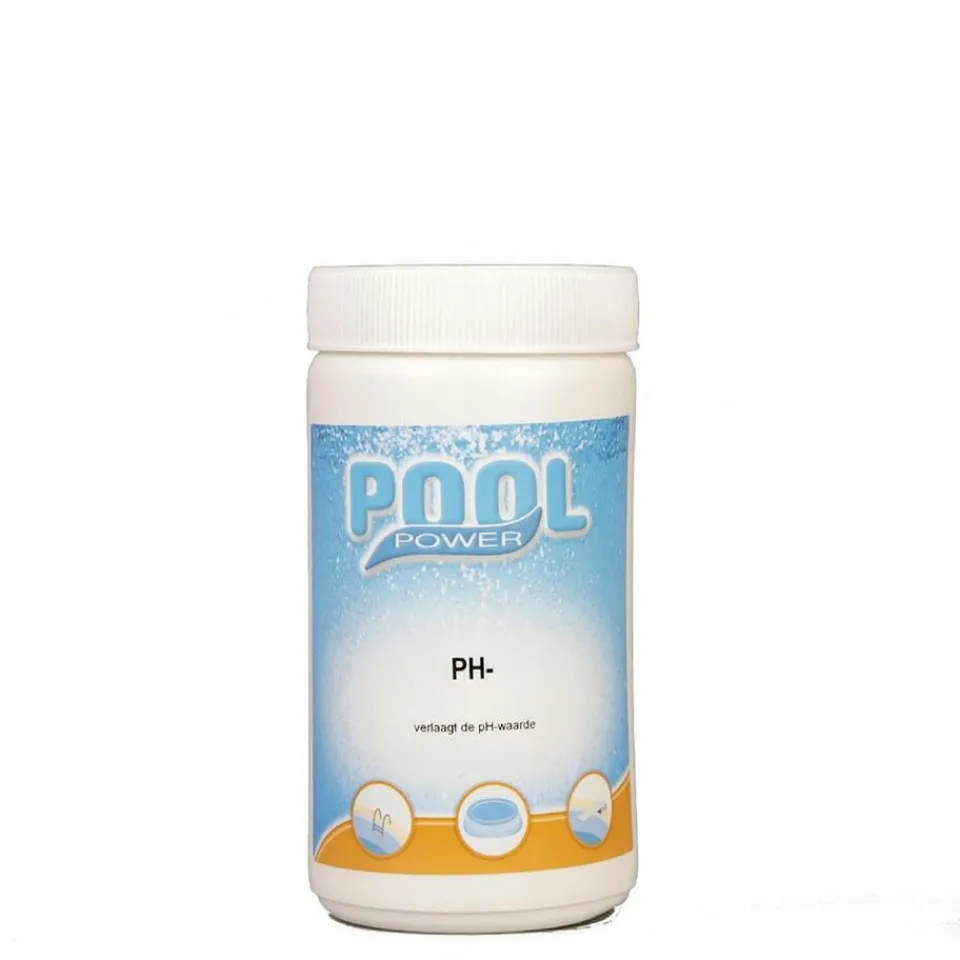 Pool power pH min Flacon 1,5 kg. Pool Power pH Min is een pH verlager in granulaatvorm. De benodigde hoeveelheid oplossen in een kunststof emmer met water en vervolgens gelijkmatig over het wateroppervlak verdelen, bijvoorbeeld met een gieter. Breng de pH waarde van uw zwembad naar beneden met deze Pool power pH minus flacon.