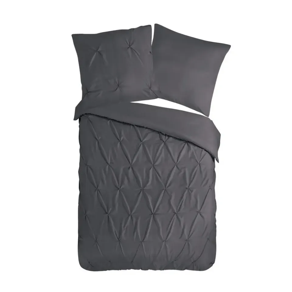 Dekbedovertrek Elegance van Pure met luxe stiksel plooien, in de kleur antraciet is gemaakt van 100% polyester -microfiber. Deze stof valt soepel om je heen en is licht van gewicht, wat het comfortabel maakt voor elk seizoen.