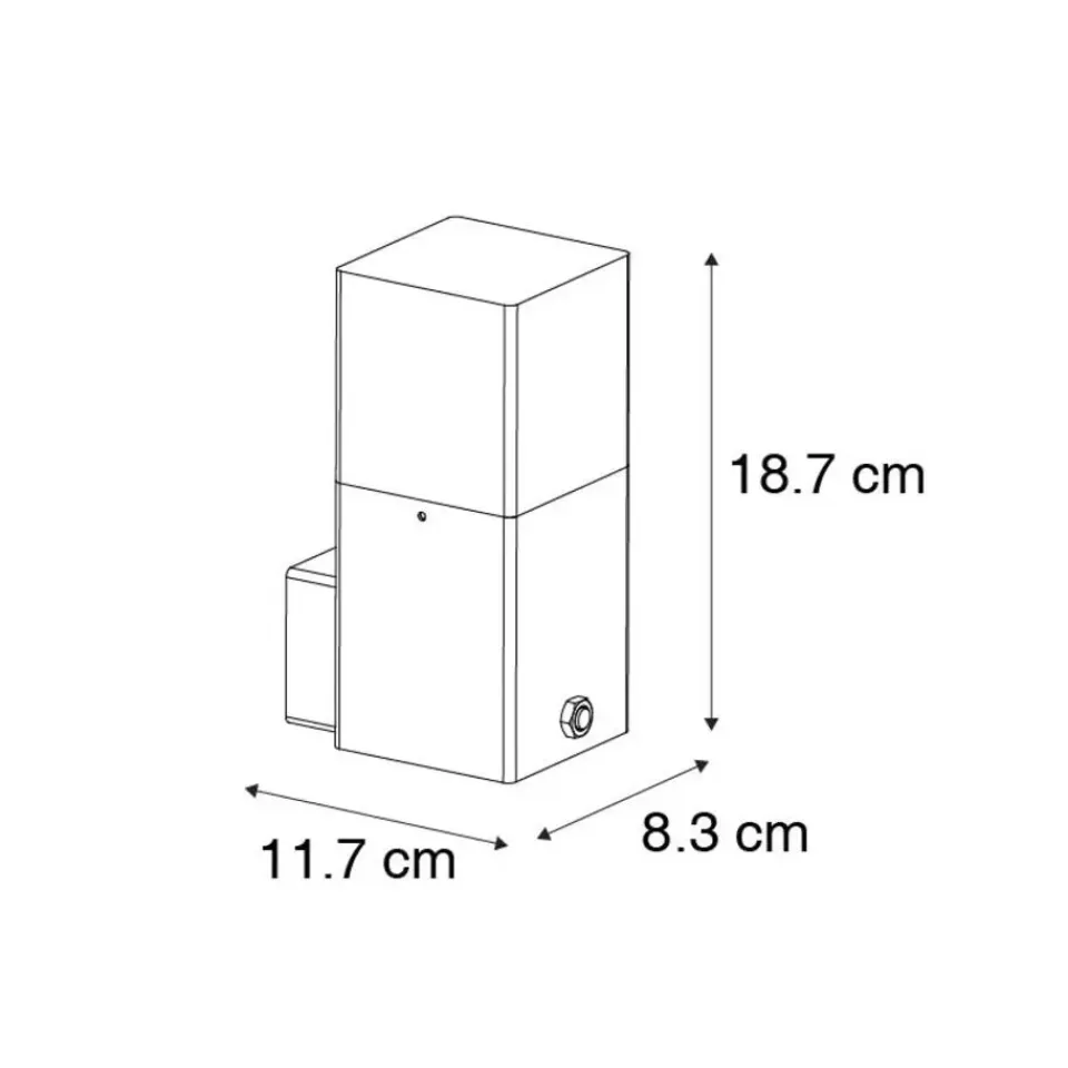 Wil ook buiten graag meer sfeer toevoegen? Dat doe je met wandlamp Denmark. Deze zwarte wandlamp is gemaakt van aluminium met kunststof. Wat hem zo bijzonder maakt is dat het kunststof een smoke effect heeft. Dit zorgt voor een gezellige sfeer. De wandlamp heeft een diepte van 11,7 cm, hoogte van 18,7 cm en lengte van 8,3 cm. De montageplaat heeft een diepte van 2,8 cm, lengte van 6 cm en breedte van 6 cm. Je maakt Denmark compleet met een lichtbron met E27 fitting (max. 15 Watt). Vergeet deze er niet nog los bij te bestellen. Met zijn IP-waarde van IP44 is de wandlamp spatwaterdicht. Daardoor is hij perfect voor beschutte plekken zoals naast de voordeur of onder de carport. Met de schemerschakelaar springt de verlichting aan wanneer het donker wordt en gaat weer uit wanneer het licht wordt buiten. Zo vergeet je nooit de lamp aan of uit te zetten, super handig! Maak jouw buitenomgeving veilig en sfeervol met wandlamp Denmark.