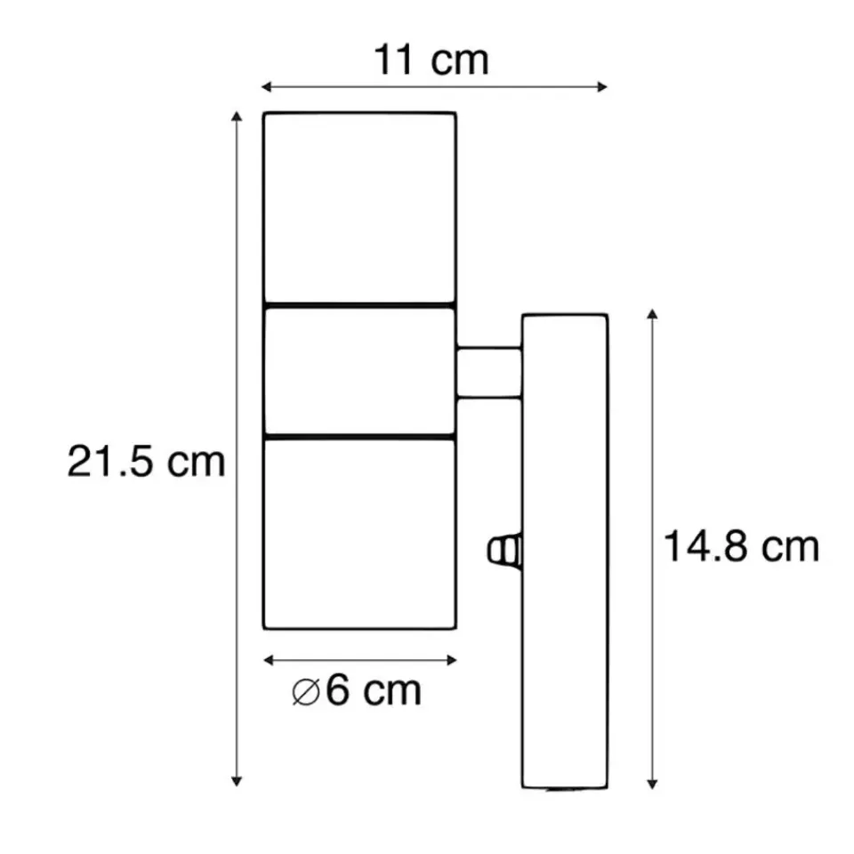 Het licht van deze lamp straalt naar boven en naar beneden. Dit geeft een prachtig effect op de muur. Met een IP waarde van IP44 kan deze wandlamp tegen de regen. Ook is hij gemakkelijk aan te sluiten op 230 volt.