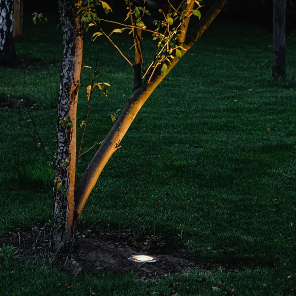 Mooie grondinbouwspot van goede kwaliteit met zware RVS afdekring. Deze grondspot is voorzien van een kantelbare binnenkant waardoor het licht vanuit de grond gericht kan worden. De lamp is dimbaar met externe dimmer (dimmer niet inbegrepen). De lamp heeft een diameter van 13 cm. De inbouwmaten van deze spot: een diameter van 12,6 cm en een diepte van 14,5 cm. De spot wordt geleverd met een kabel van ca. 30 cm, deze dient waterdicht verbonden te worden met de grondkabel. De spot is tevens overrijdbaar (je kan er met de auto overheen rijden). Je maakt de lamp helemaal compleet met een GU10 lichtbron met een Wattage van max. 50. Deze lichtbron is nog apart bij te bestellen. Delux is spuitwaterdicht waardoor het de perfecte lamp is voor buitenshuis.