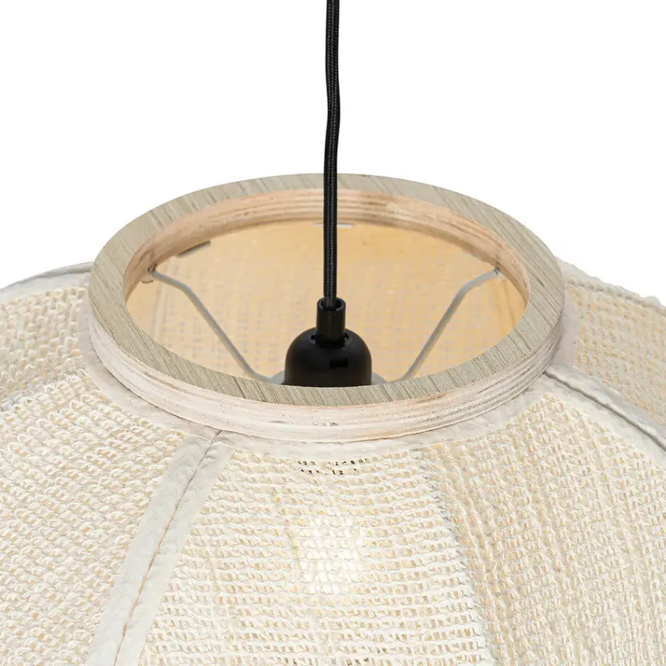 Hanglamp Rob voelt zich helemaal thuis in een oosters interieur. De lamp is gemaakt van stof en is afgewerkt in het wit met een natuurlijke houtkleur. De lamp heeft een diameter van 48 cm en een hoogte van 160 cm. Hij is verstelbaar in hoogte, max. 160 cm en min. 72,5 cm. De montageplaat heeft een diameter van 12 cm en een hoogte van 2,5 cm. Het snoer heeft een lengte van 120 cm. Vergeet niet nog een lichtbron met E27 fitting (max. 60 watt) er los bij te bestellen. Deze wordt er niet bij geleverd. Deze hanglamp is dimbaar, maar een dimmer is niet inbegrepen. Mist jouw interieur nog wat sfeer? Dan is Rob de perfecte keuze.