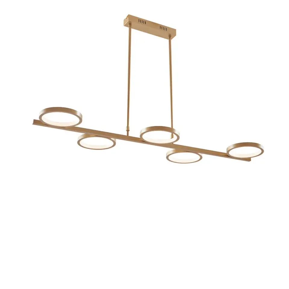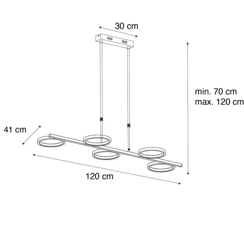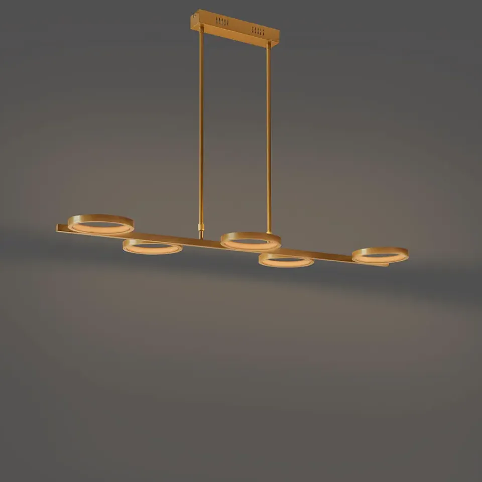 Vive past perfect in een modern interieur. De lamp is gemaakt van aluminium en staal en is afgewerkt in het goud. De 5 lichtpunten maken het een echte sfeermaker! De LED verlichting van de lamp is geïntegreerd in het armatuur. De geïntegreerde LED verlichting gaat gemiddeld 30.000 branduren mee en verbruikt 30 watt. Door het hoge lichtvermogen van maximaal 1050 lumen is de hanglamp geschikt voor functionele verlichting. Deze hanglamp kun je 3-staps dimmen, dimmer is inbegrepen. Daarmee is Vive dimbaar van 30% minimum sfeerlicht naar 100% functioneellicht. Met Vive zit je altijd goed: deze hanglamp wil je toch in huis hebben?