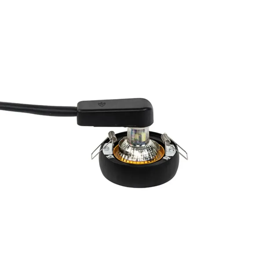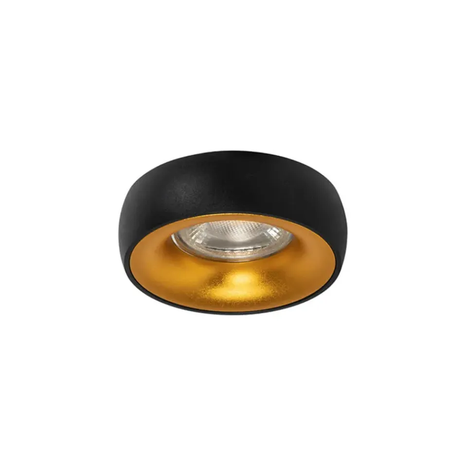 Klaar om je woning of kantoor nét dat beetje extra te geven? Dat kan met de Mooning inbouwspot! Het zwarte armatuur met de gouden binnenkant maakt deze spot een echte eyecatcher. De lichtbron valt gelijk met het plafond en de kap van de lichrbon valt hier net wat lager omheen. Dat zorgt voor een mooi (direct) lichteffect. De gouden binnenkant maakt je licht nog net wat warmer van kleur, supersfeervol! De spot heeft een diameter van 8,5 cm en een hoogte van 8 cm. De inbouwdiepte is 10 cm en de inbouwdiameter is 6,5 cm. Met een GU10 lichtbron van maximaal 50 Watt maak je deze lichtbron compleet (lichtbron niet bijgeleverd). Met een externe dimmer kun je deze spot dimmen (niet inbegrepen). Maak je woning stijlvol met deze Mooning inbouwspot!