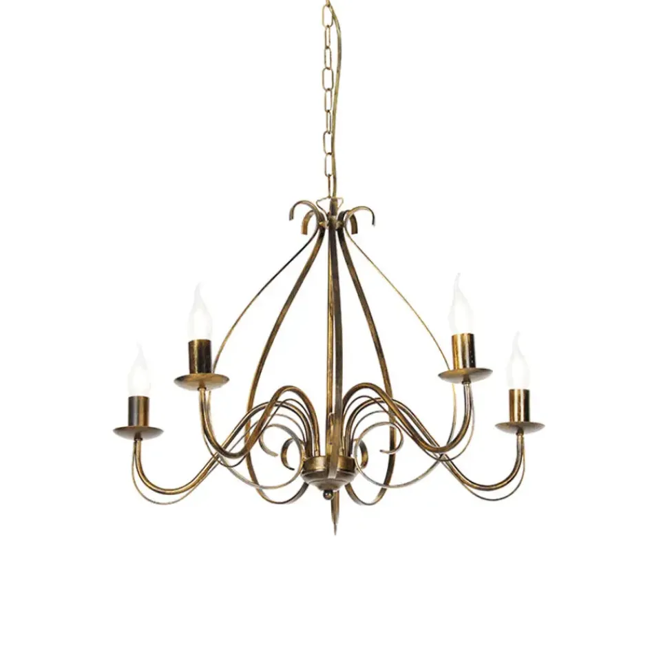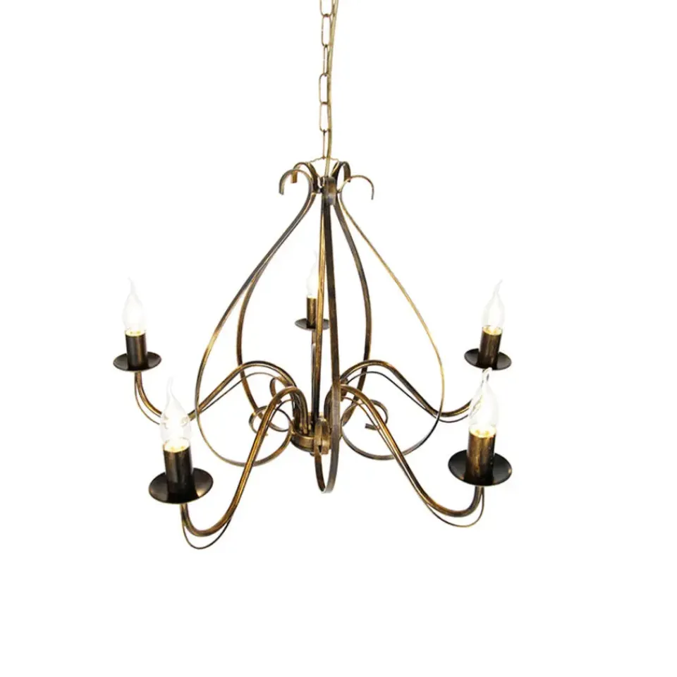 Met een kroonluchter in huis krijg je direct een klassieke en stijlvolle uitstraling van je interieur. Giuseppe 5 is gemaakt van staal en afgewerkt in messing. Hij heeft een diameter van 60 cm en is verstelbaar in hoogte, minimaal 72 cm en maximaal 104 cm. De montageplaat heeft een diameter van 9 cm en een hoogte van 6 cm. Je maakt de kroonluchter af met 5 lichtbronnen die ieder beschikken over een E14 fitting (max. 40 Watt). Zorg dat je deze er nog los bij besteld. Met een externe dimmer is de kroonluchter dimbaar, deze is niet inbegrepen. Fleur je woonkamer, hal of kinderkamer op met Giuseppe 5!