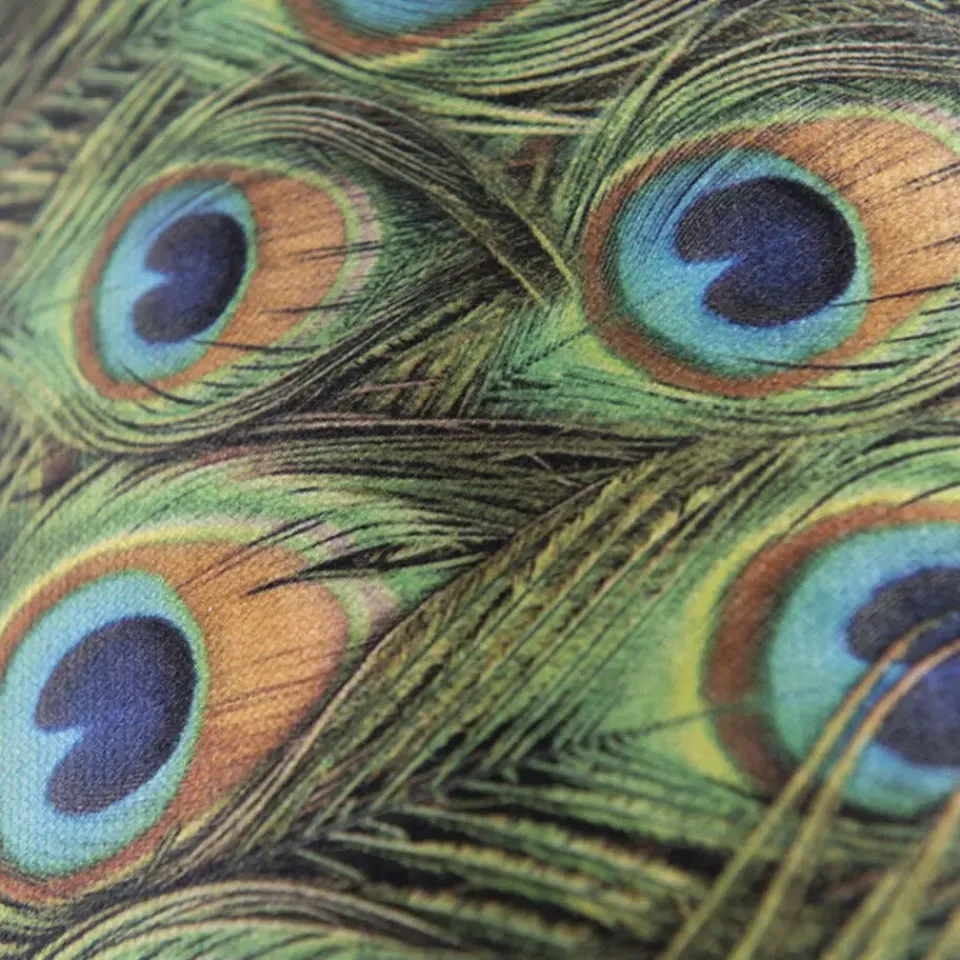 Wat een eyecatcher, deze velours lampenkap. Met deze lampenkap kun je jouw vloerlamp of hanglamp voorzien van een sfeervol uiterlijk waarbij de kap als sfeermaker fungeert. Deze lampenkap heeft een uniek pauwen design. Naast het unieke design aan de buitenkant is de lampenkap ook prachtig met goud afgewerkt aan de binnenkant, dat zorgt voor een gezellig lichteffect in huis. Deze lampenkap heeft een diameter van 35 cm en een hoogte van 20 cm. Let op: als je meerdere lampenkappen besteld zullen deze van elkaar verschillen. Geen één kap is precies hetzelfde. Het is een leuke toevoeging in huis!