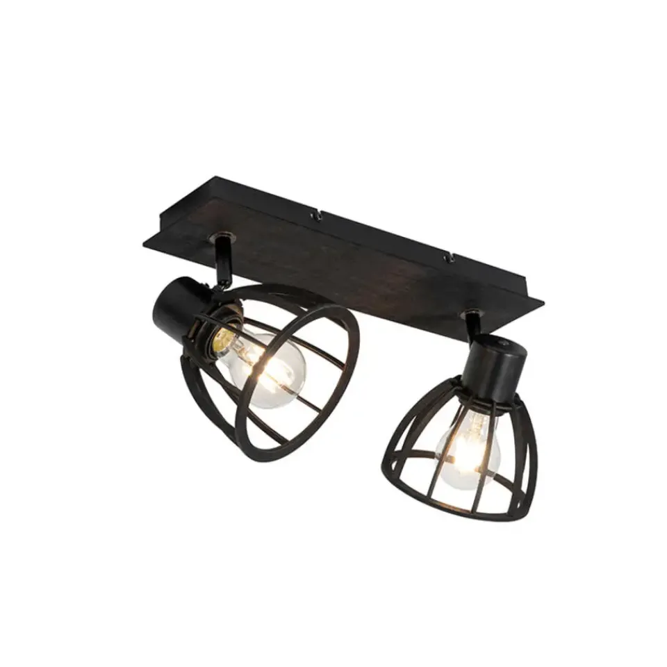 Wat is deze Fotu een stoere plafondlamp! Hij is gemaakt van hout met staal en is afgewerkt in het zwart. De spots zijn eenvoudig te draaien, zo bepaal je zelf waar het licht naar toe schijnt. Erg makkelijk in de keuken of in de hal! De lamp heeft een hoogte van 18 cm, lengte van 52 cm en breedte van 14 cm. De montageplaat heeft een hoogte van 2,5 cm, lengte van 35 cm en breedte van 8 cm. Je maakt Fotu compleet met twee lichtbronnen met ieder een E27 fitting (40 Watt), deze moet je er nog los bij bestellen. De lamp is dimbaar met een externe dimmer, deze is niet inbegrepen. Deze Fotu past perfect in een industriële woonkamer of slaapkamer. Plafondlampen zijn makkelijk te gebruiken al basisverlichting, zo ook deze Fotu!