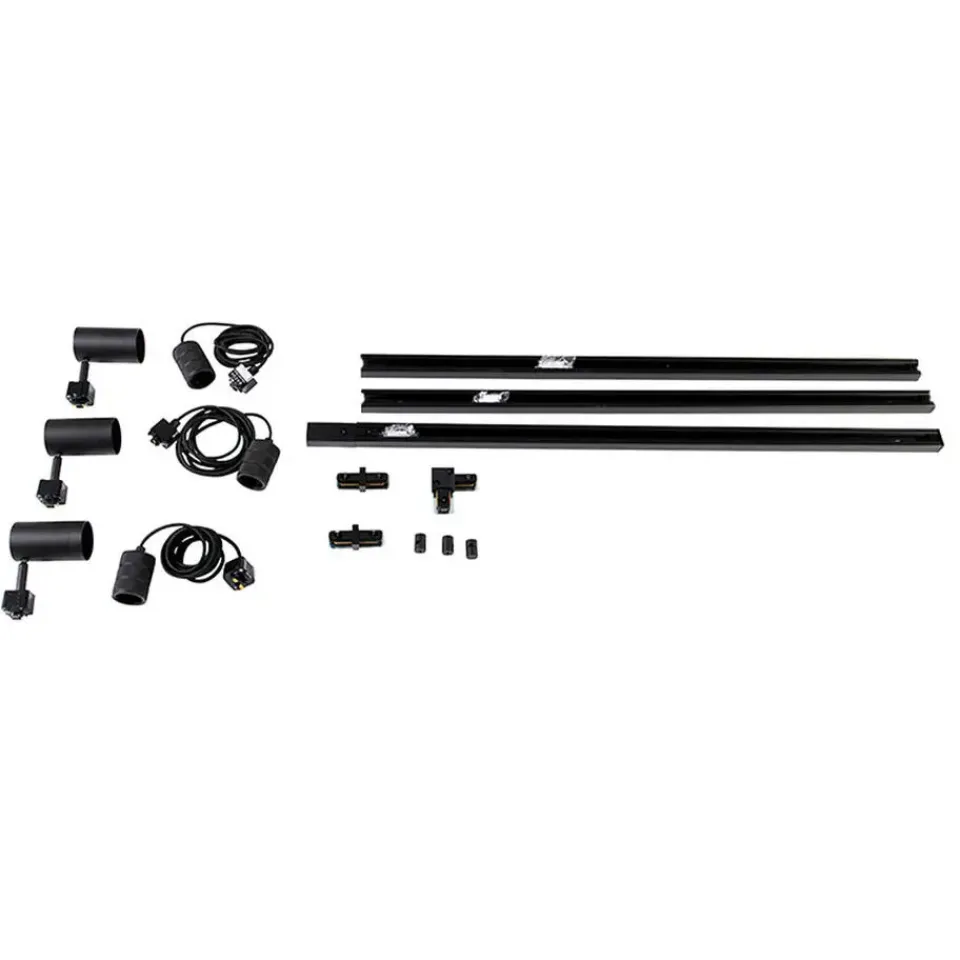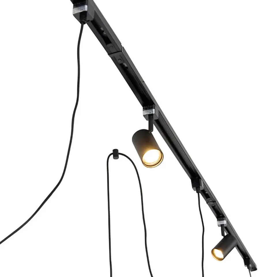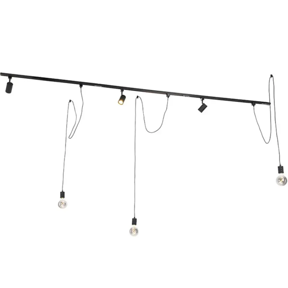 Op zoek naar de perfecte verlichting met zowel functioneel licht als sfeerlicht? Kies dan voor het moderne en stijlvolle railsysteem Cavalux Jeana. De railspots geven je hét functionele en gerichte licht wat je nodig hebt. De hanglampen geven een speels effect en daarbij net wat extra sfeer! De rail is in totaal 285 cm lang en 3,4 cm breed, waaraan drie railspots Jeana en drie hanglampen Cavalux gemonteerd zitten. De spots hebben een hoogte van 15 cm en de hanglampen een maximale hoogte van 237 cm. De hanglampen kun je inkorten naar de gewenste lengte. Met drie E27 lichtbronnen en drie GU10 lichtbronnen met elk max. 60 Watt maak je de rail helemaal compleet. De railverlichting is dimbaar met een externe dimmer. Deze wordt, net als de lichtbron, niet bijgeleverd. Je kunt ervoor kiezen om de rail in een rechte lijn op te hangen, maar je kunt ook kiezen voor het maken van bochten. Dit zijn 1-fase spots, wat wil zeggen dat alle lichtbronnen op de rail op één dimmer/schakelaar aangestuurd worden en dus allemaal tegelijk bediend zullen worden.