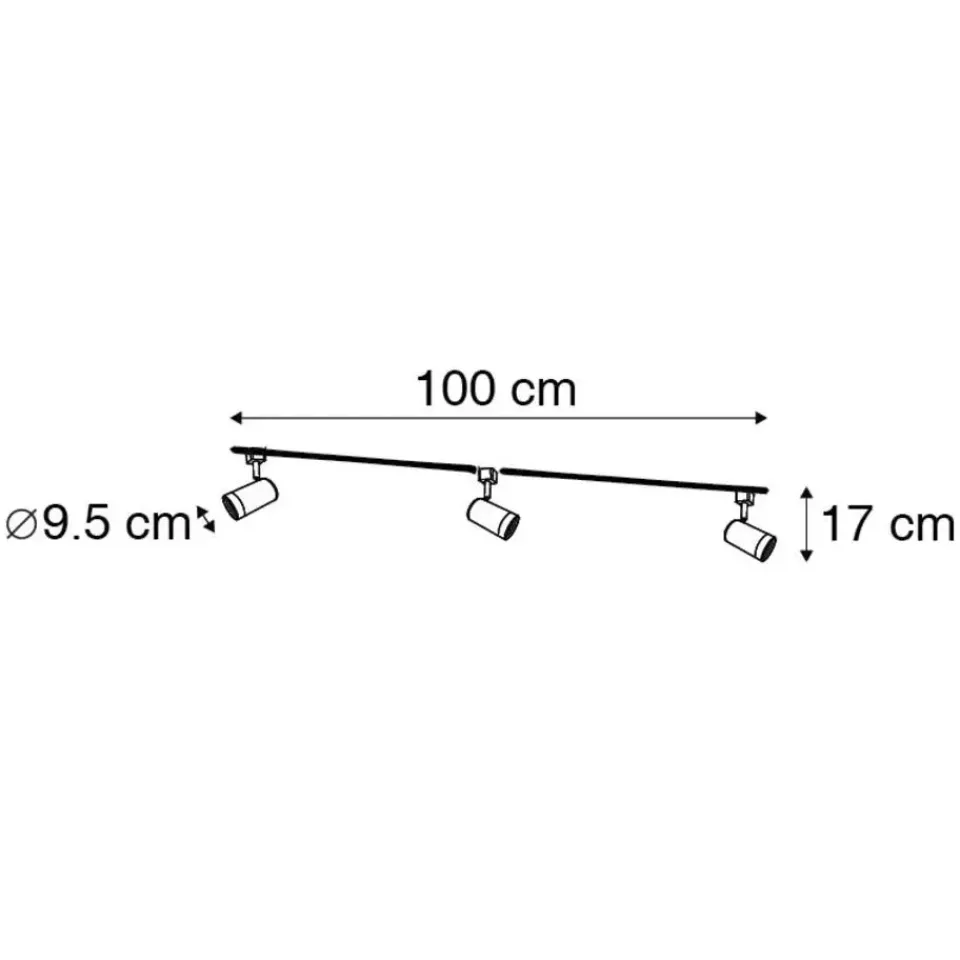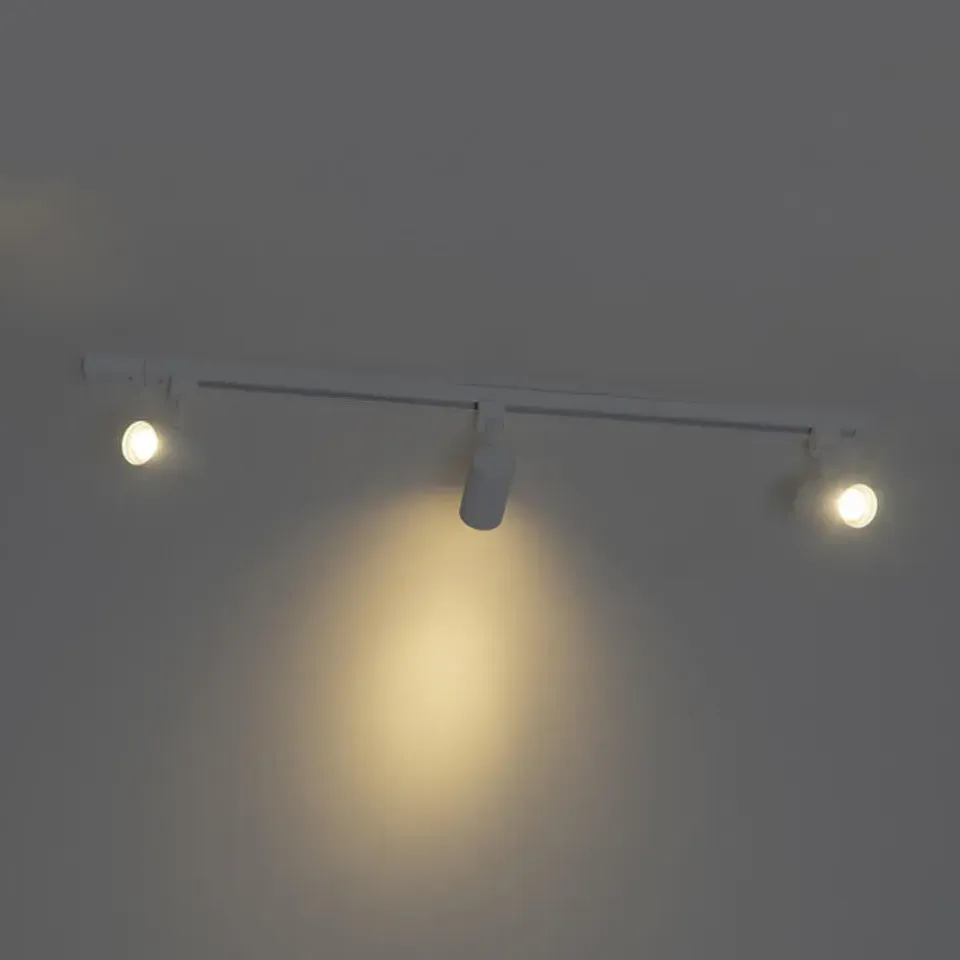 Het witte Jeana railsysteem met drie spots is helemaal thuis in je moderne interieur. De rail is 100 cm lang en heeft inclusief de railspots een hoogte van 17 cm. De railspots maak je compleet met drie GU10 lichtbronnen, van elk maximaal 50 Watt. Het is mogelijk om te lichtbronnen de dimmen met een externe dimmer (deze is niet inbegrepen). Dit zijn 1-fase railspots, wat wil zeggen dat alle spots samen aangestuurd worden door één dimmer/lichtschakelaar. Maak jouw interieur compleet met deze strakke rail van Qazqa.