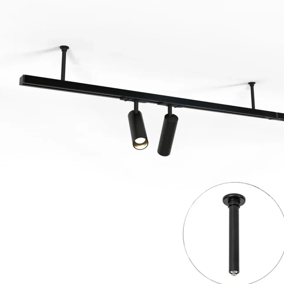 Breng je 1-fase railsysteem op stijlvolle wijze op de juiste hoogte met deze zwarte ophanging van 10,6 cm. Ideaal om je verlichting een strakke, zwevende uitstraling te geven en perfect geschikt voor zowel hoge als lage plafonds. Het elegante, minimalistische ontwerp in mat zwart sluit moeiteloos aan bij een modern interieur en zorgt voor een verfijnde look. Bovendien is deze ophanging eenvoudig te installeren, zodat je snel kunt genieten van een professionele lichtopstelling. Geef je verlichting de juiste positie en sfeerboost met deze ophanging. Bestel vandaag nog en transformeer je ruimte!