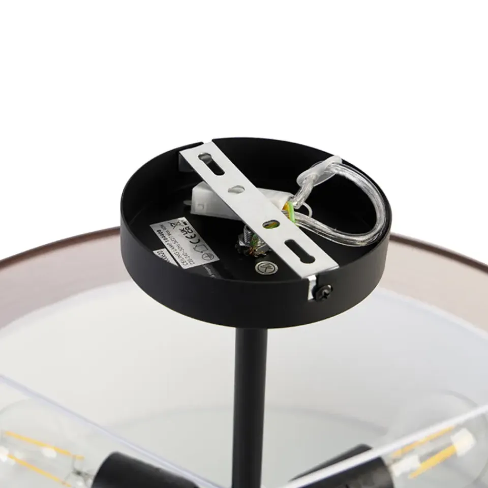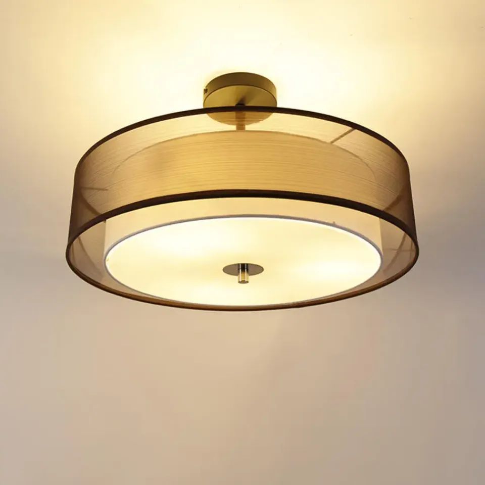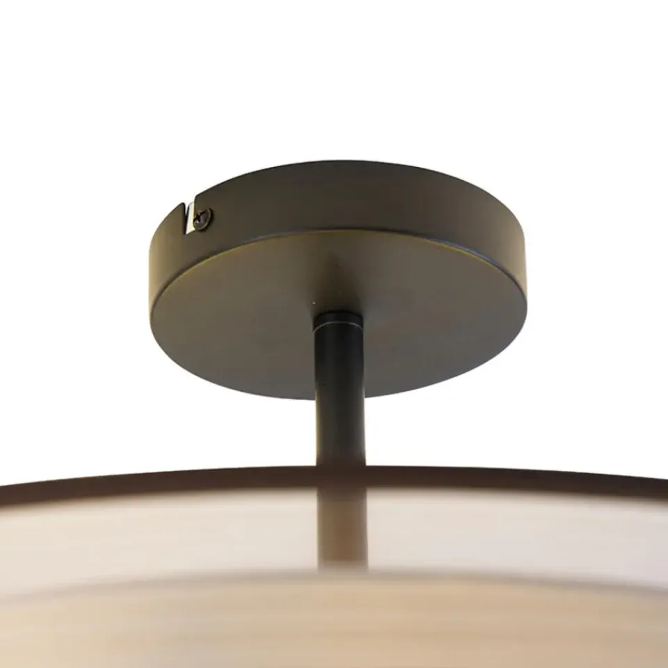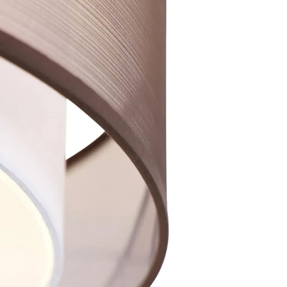 Drum Duo is zoals je al doet vermoeden een lamp met een duo kap. De binnenste kap is wit en de buitenste kap is bruin en doorschijnend. Dit zorgt voor een extra dimensie in de lamp. Doordat de binnenste kap is afgesloten met een opaal kunststof plaat, wordt het licht gedempt. Dat zorgt voor een aangename licht beleving. Drum Duo is gemaakt van stof met staal en glas. Hij heeft een diameter van 50 cm en een hoogte van 32 cm. De montageplaat heeft een diameter van 12 cm en een hoogte van 2,5 cm. Je maakt de plafondlamp af met 3 lichtbronnen met een E27 fitting van max. 40 Watt. Zorg dat je deze er nog los bij besteld. De lamp is dimbaar met een externe dimmer, deze is niet inbegrepen. Drum Duo is een mooie plafondlamp voor in de hal, woonkamer of slaapkamer. Maak het gezellig in huis met Drum Duo.