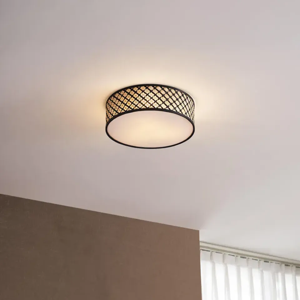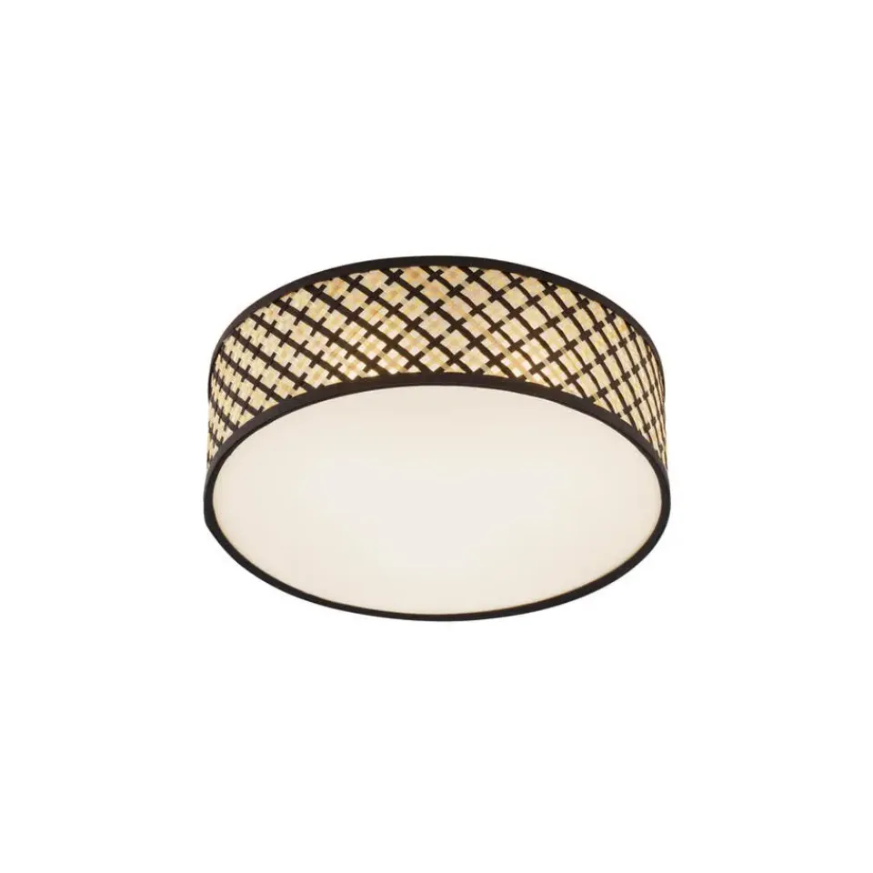 Breng warmte en een trendy oosterse sfeer in huis met de Tremmo plafondlamp! Deze lamp, met een royale diameter van 40 cm, combineert prachtig gevlochten rotan met een modern zwart frame. Het unieke patroon van de rotan kap verspreidt het licht op een speelse en sfeervolle manier, terwijl de diffuser aan de onderzijde zorgt voor een zachte en gelijkmatige verlichting.