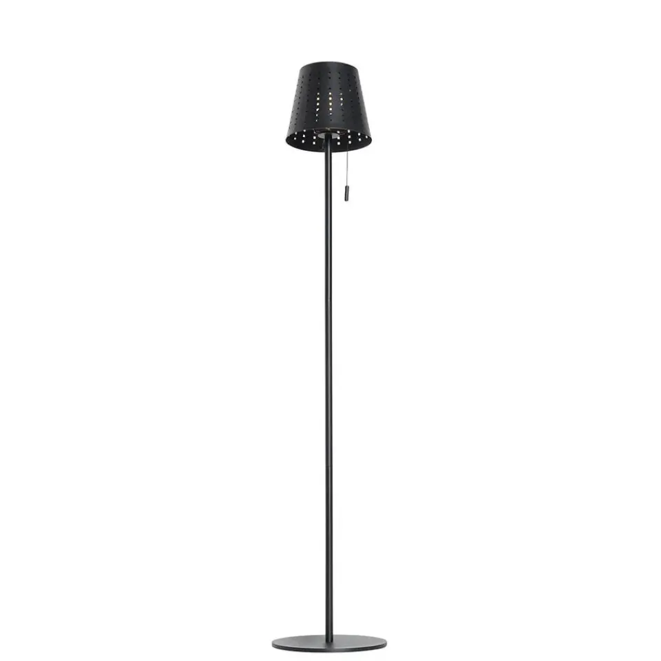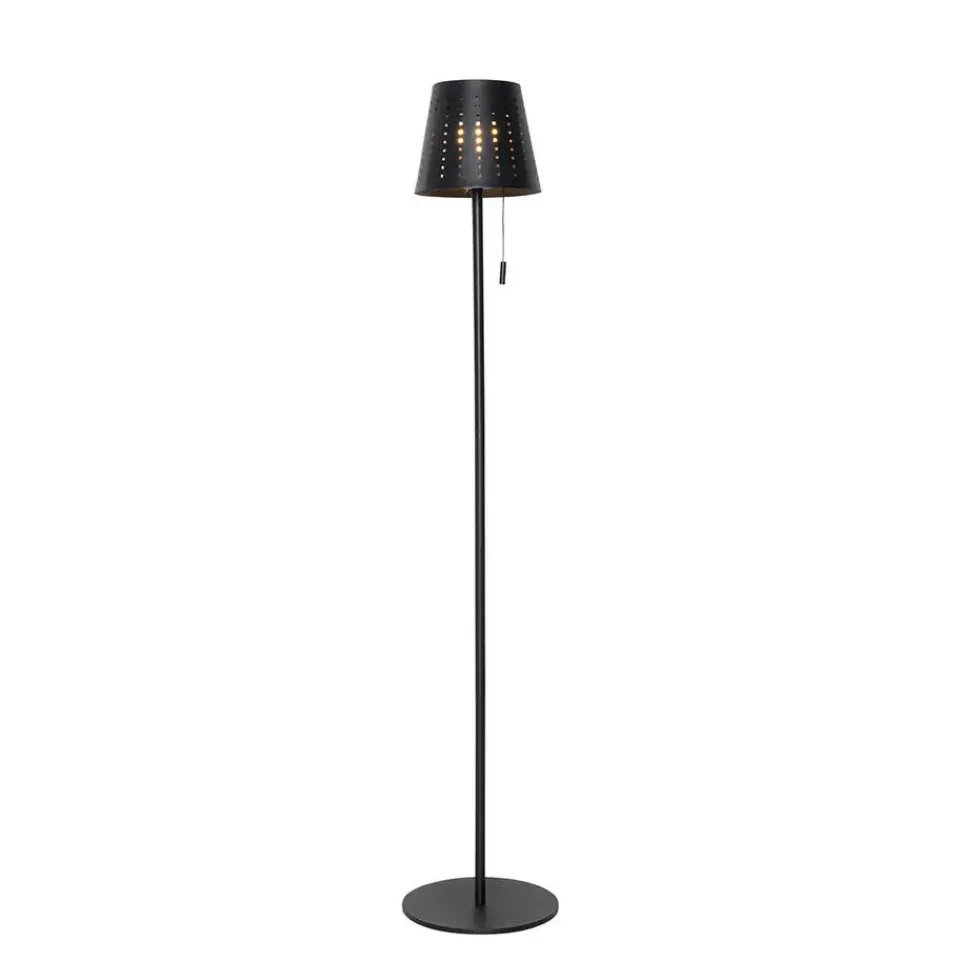 Staande buitenlamp Ferre is één van onze bestsellers, en wij begrijpen wel waarom! Door zijn materiaal keuze van staal met aluminium in een zwarte kleur, is het een echte moderne lamp. Deze lamp beschikt over geïntegreerde LED verlichting. De lamp heeft een diameter van 18 cm en een hoogte van 94 cm. Het LED maakt gebruik van 3 watt en gaat gemiddeld 30.000 branduren mee. Door zijn IP-waarde van IP44 is hij geschikt voor beschutte plekken zoals tegen het huis, de carport of onder een afdak. Het LED heeft een lichtvermogen van 44 lumen. Daarmee is hij perfect als sfeerverlichting. Ferre komt inclusief snoer, daarmee is hij oplaadbaar. Maar Ferre werkt ook op zonne-energie Het snoer is 150 cm lang. Deze staande buitenlamp is 3-staps dimbaar. Daarmee bepaal je zelf de lichtsterkte. De Ferre kan van 100% functioneel licht naar 25% sfeerlicht. Gezellig buiten zitten met Ferre: door deze staande buitenlamp wil je bijna niet naar binnen.
