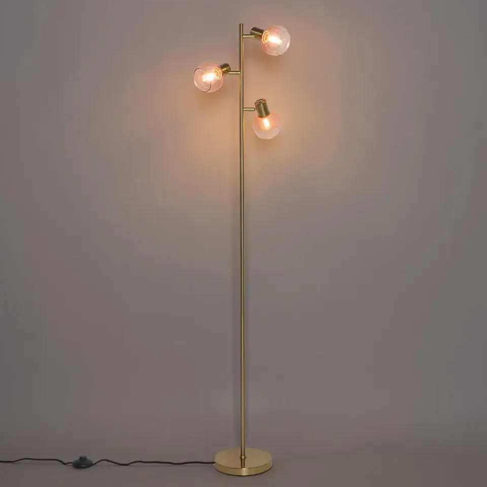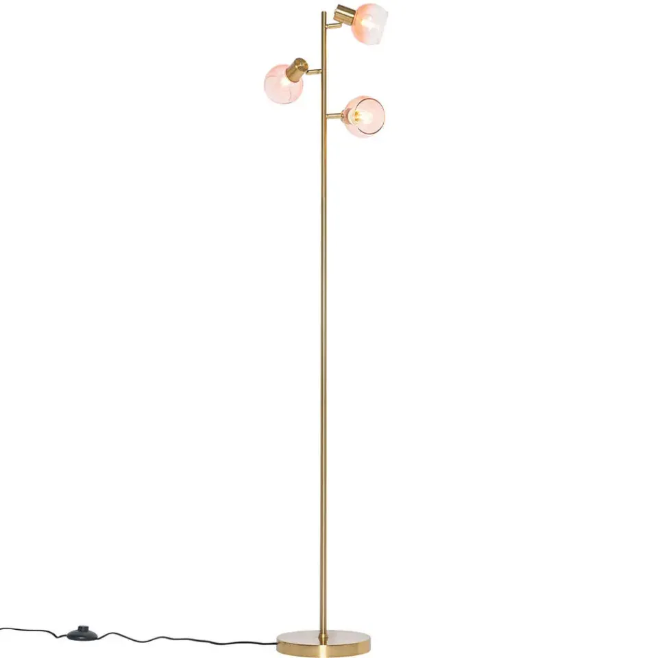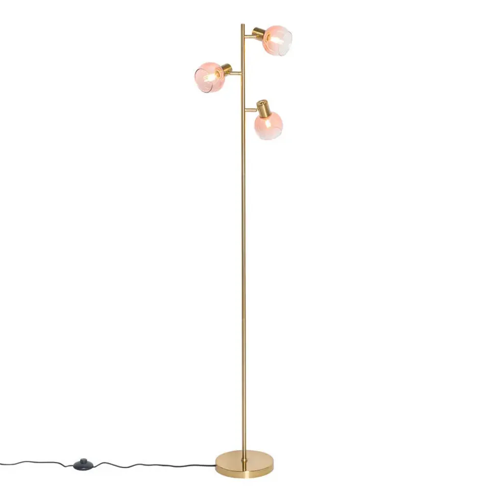 Simpel, maar toch effectief: dat is deze Art Deco vloerlamp. Vidro is gemaakt van staal met glas en afgewerkt in het roze met goud/messing. De vloerlamp heeft een diameter van 25 centimeter en een hoogte van 150 centimeter. De voet heeft een diameter van 20 centimeter en een hoogte van 2,5 centimeter. Wat meer sfeer creëren? De spot is dimbaar (dimmer niet inbegrepen). Vergeet niet om nog drie lichtbronnen met E14 fitting (max. 25 Watt) er los bij te bestellen. De lamp komt inclusief drie lampenkappen en deze hebben een diameter van 10 centimeter en een hoogte van 8 centimeter. De perfecte toevoeging in bijvoorbeeld de slaapkamer of woonkamer!