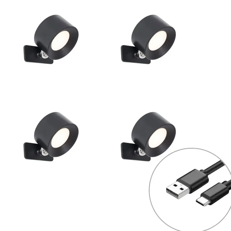 Deze set van vier moderne wand- en plafondlampen uit de Bright-serie combineert strak design met ultieme flexibiliteit. De matzwarte afwerking geeft elke ruimte een eigentijdse, krachtige uitstraling, terwijl het compacte ontwerp moeiteloos opgaat in elk interieur. Dankzij de oplaadbare LED-verlichting ben je volledig vrij van kabels en stopcontacten – ideaal voor creatieve lichtoplossingen, waar je maar wilt.