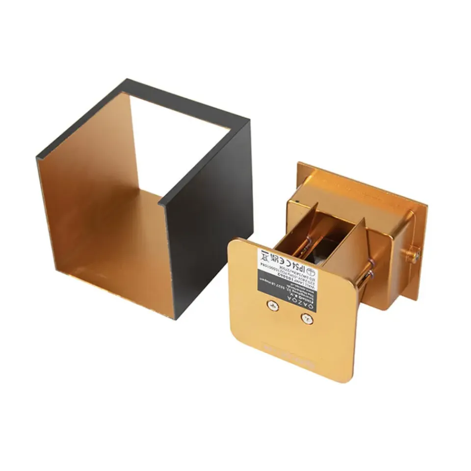 Voeg sfeer toe met Edwin. Deze wandlamp is geschikt voor zowel binnen als buiten. Door zijn hoge IP54 waarde is hij namelijk spatwaterdicht. De lamp is gemaakt van aluminium. De buitenzijde is afgewerkt in het zwart en de binnenzijde in goud/messing, dat zorgt voor een warm lichteffect wanneer de verlichting aan staat. Hij heeft een diepte van 10 cm, hoogte van 10 cm en lengte van 10 cm. Edwin beschikt over 2 geïntegreerde LED lampen. Deze hebben een lichtvermogen van 360 lumen en 2700 Kelvin. De binnenzijde van de lamp zorgt voor een prachtig strijkeffect op muur, zowel aan de boven- als de onderkant van de lamp. Wandlamp Edwin past perfect bij de moderne woonstijl, maar eigenlijk kan iedereen wel een Edwin gebruiken!