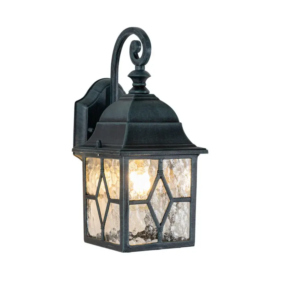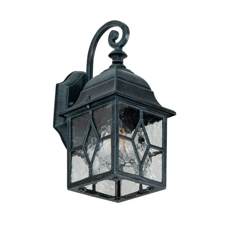 Buiten wandlamp London past perfect naast de voordeur, het tuinhuis of op het terras. De aluminium met glazen buitenlamp is afgewerkt in een groene kleur. Hij heeft een diepte van 17,8 cm, een hoogte van 31,8 cm en een lengte van 15,1 cm. Het montageplaatje heeft een diepte van 2,5 cm, hoogte van 16 cm en lengte van 10,8 cm. Door zijn IP23 waarde is hij regenwaterdicht en geschikt voor beschutte plekken zoals tegen het huis. Ga voor een mooie E27 fitting lichtbron van max. 60 watt, omdat deze goed zichtbaar is (niet inbegrepen). Zorg voor een fijne sfeer in jouw tuin met London.