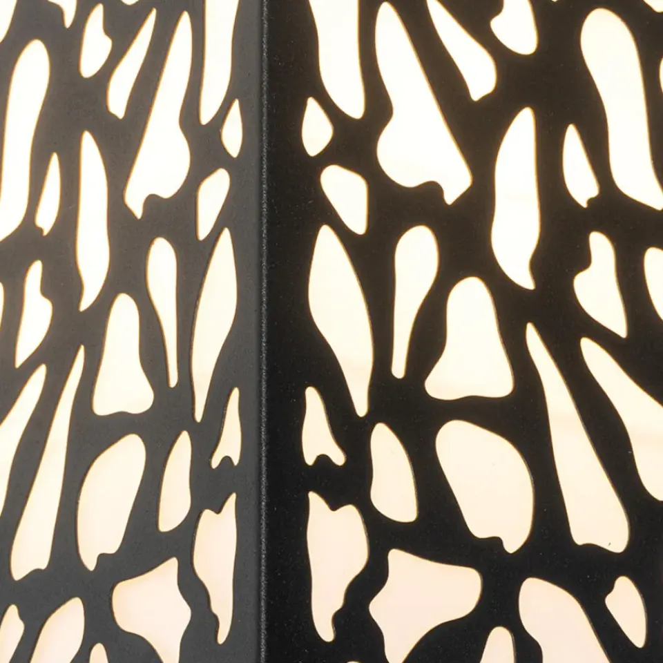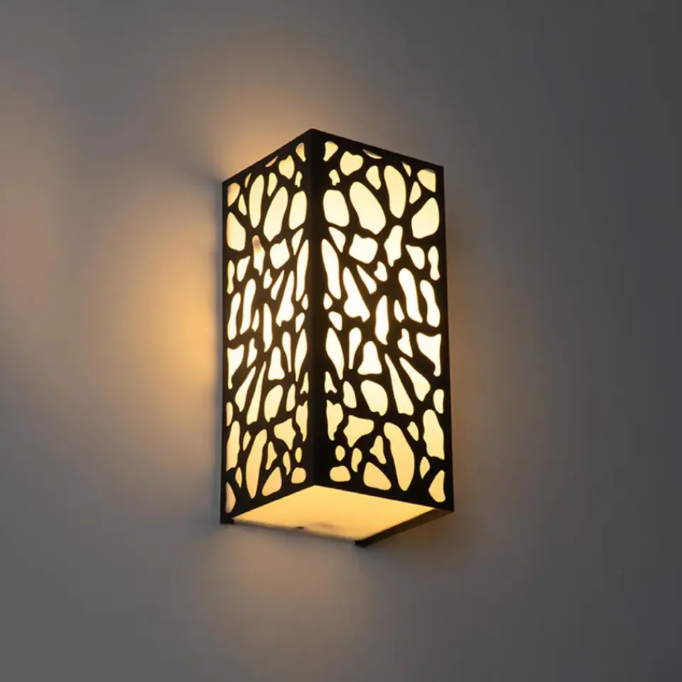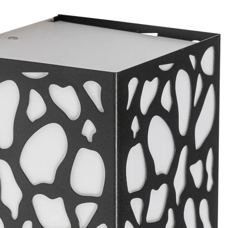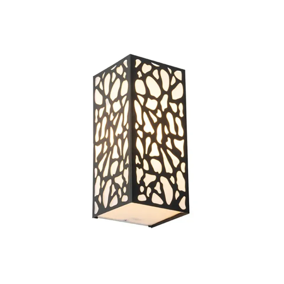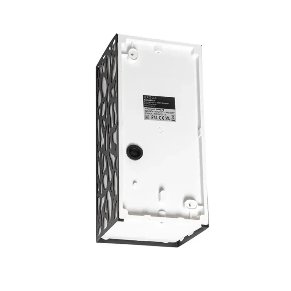 Deze opvallende buiten wandlamp zorgt voor een prachtige lichteffect door het gevlekte patroon. De lamp is gemaakt van kunststof met aluminium en is afgewerkt in het zwart. Hij heeft een diepte van 11,6 cm, hoogte van 26 cm en lengte van 12,4 cm. Je maakt de wandlamp af met een lichtbron met E27 fitting (max. 20 Watt). Zorg dat je deze er nog los bij besteld. Met een externe dimmer is de wandlamp dimbaar, deze is niet inbegrepen. Door zijn IP-waarde van IP44 is de wandlamp spatwaterdicht, perfect voor beschutte plekken zoals naast de voordeur of onder de overkapping. Zorg voor goede verlichting rondom jouw huis met wandlamp Nicole.