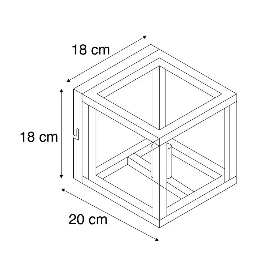 De lamp heeft een diepte van 20 cm en een lengte en hoogte van 18 cm. De montageplaat heeft een diepte van 2 cm. De lamp is dimbaar om de perfecte sfeer te creëren. Zorg voor leuke basisverlichting in huis met deze Cage.