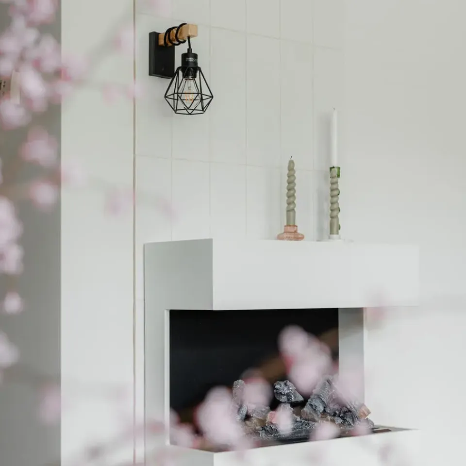 Wat een schattige wandlamp is deze Chon. Door de combinatie van zwart staal met hout-look krijgt hij een landelijke uitstraling en past hij in ieder interieur. De wandlamp heeft een hoogte van 25 cm, lengte van 13 cm en breedte van 17,5 cm. De montageplaat heeft een diepte van 2,5 cm, hoogte van 12 cm en lengte van 8 cm. De zwarte kap met open structuur zorgt voor een gezellig lichteffect in de ruimte, deze kap heeft een diameter van 13 cm en een hoogte van 12 cm. Chon maak je af met een lichtbron met E27 fitting (max. 40 Watt). Zorg dat deze lichtbron er ook nog eens leuk uit ziet, omdat hij goed zichtbaar is in het armatuur. De wandlamp is dimbaar met een externe dimmer, deze is niet inbegrepen. De perfecte wandlamp voor in een landelijke woonkamer, slaapkamer of werkkamer. Chon is wat je zoekt!